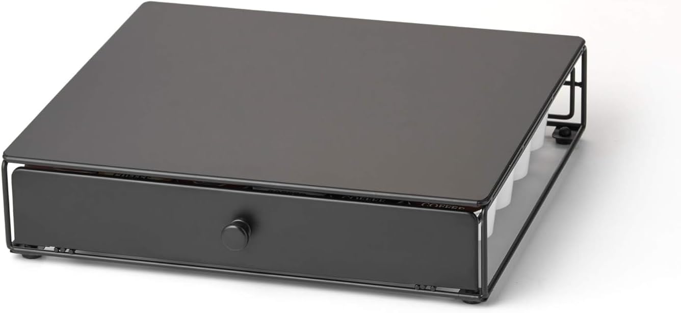 Cajon de cápsulas de café Nifty – Compatible con K-Cups, soporte para paquete de 36 cápsulas, no rodante, cajón deslizante compacto para almacenamiento bajo la cafetera, organizador de mostrador de cocina, negro