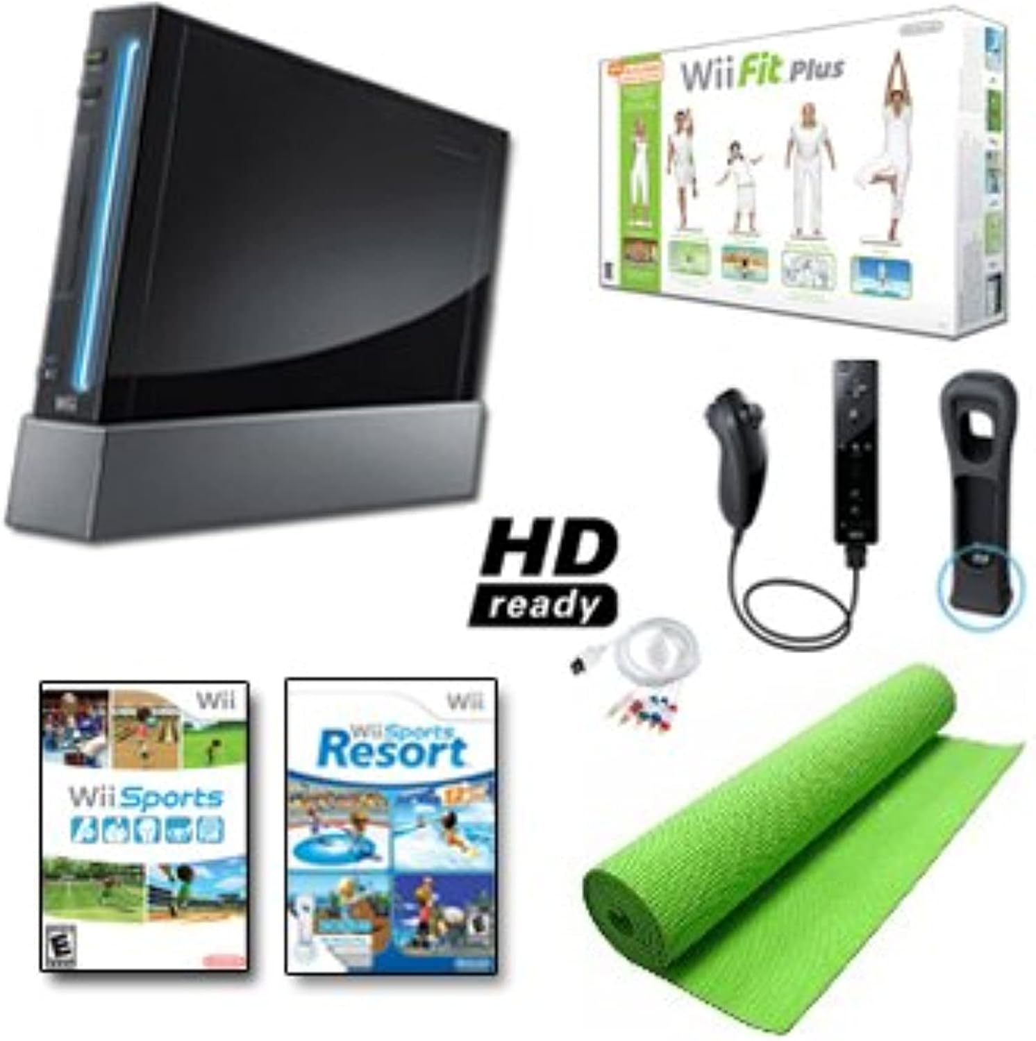 Nintendo Wii Black System HD Ready + Wii Fit Plus, paquete de alfombrillas para tablas de equilibrio