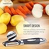 PELEADO PRECISO: Con una hoja afilada como una navaja, este esencial de cocina corta fácilmente tanto productos de piel dura como de piel suave. El diseño giratorio sigue suavemente el contorno de frutas y verduras para un pelado sin esfuerzo.