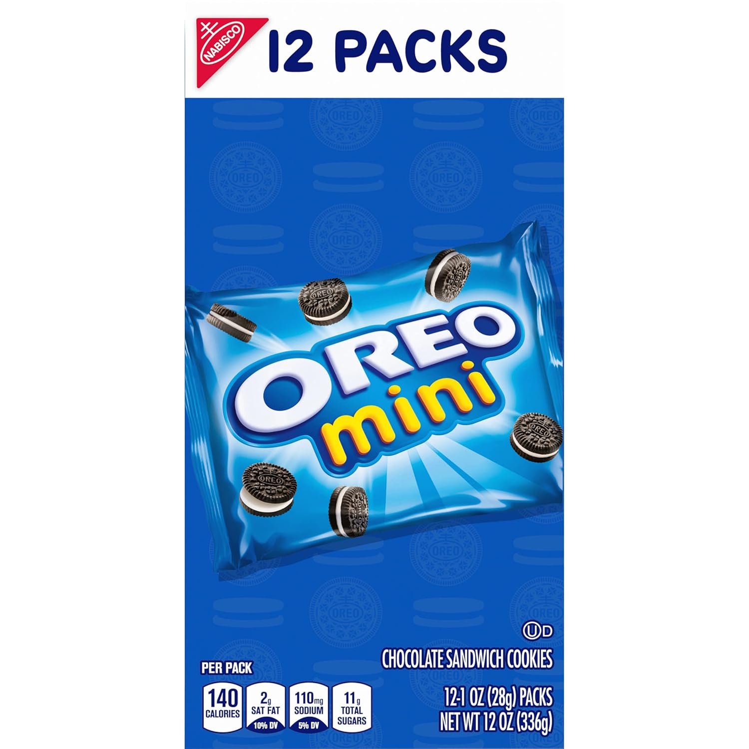 Una caja con 12 paquetes de aperitivos, de 1 onza cada uno, de minigalletas OREO tipo sándwich de chocolate (el embalaje puede variar) Las