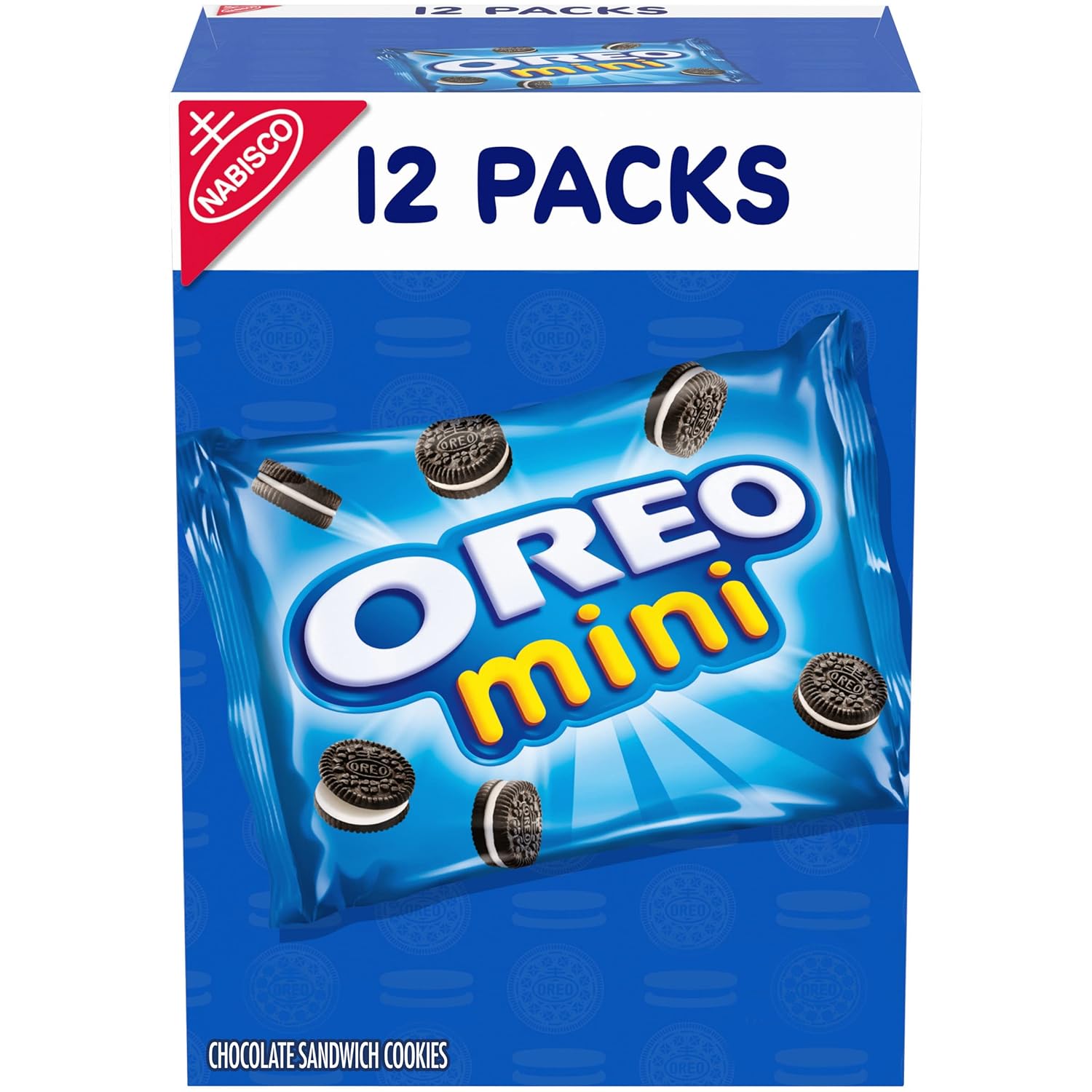 paquetes de aperitivos Mini OREO son ideales para aperitivos de lonchera, obsequios para fiestas y galletas extraescolares para niños y adultos Las galletas del