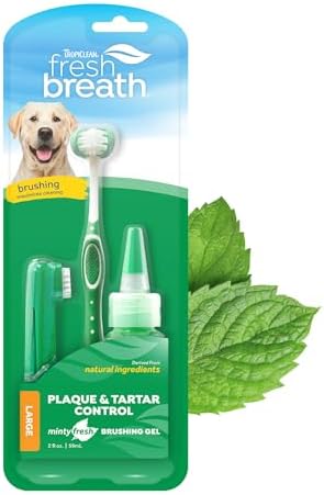 Kit de cuidado bucal para perros TropicLean Fresh Breath | Juego completo de cepillo de dientes y pasta de dientes para perros para controlar la placa y el sarro | Kit de cepillado de dientes para perros grandes