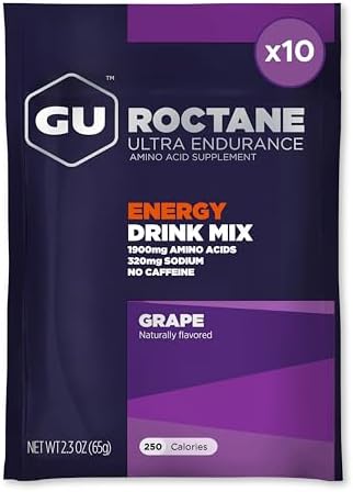 Mezcla de bebidas energéticas GU Energy Roctane Ultra Endurance, 10 paquetes individuales, uva (el embalaje puede variar)
