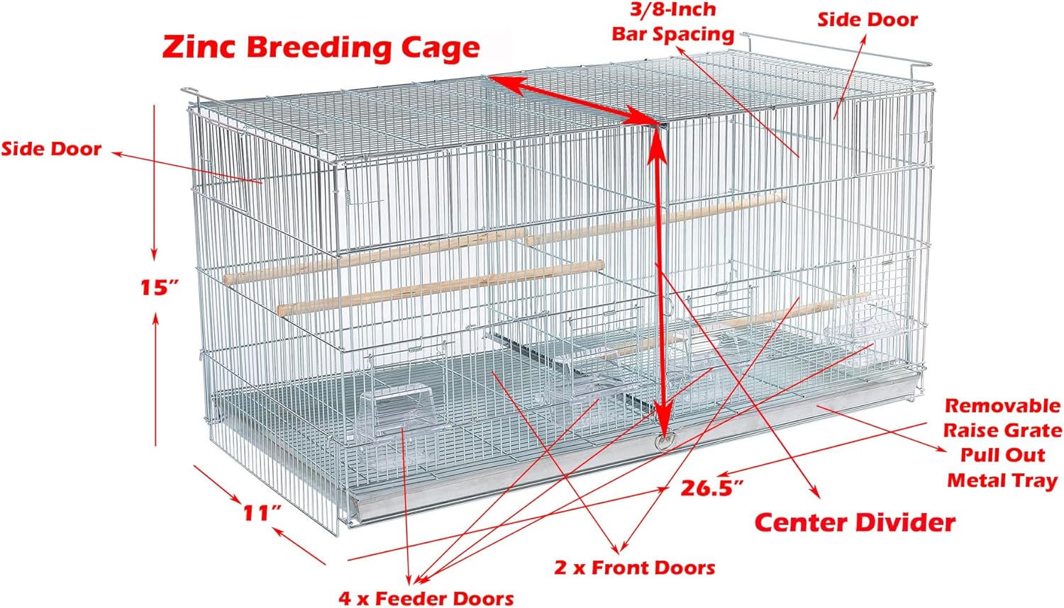 Combo: Galvanized Stack and Lock Double Breeder Cage Bird Breeding Cage with Removable Divider and Breeder Doors