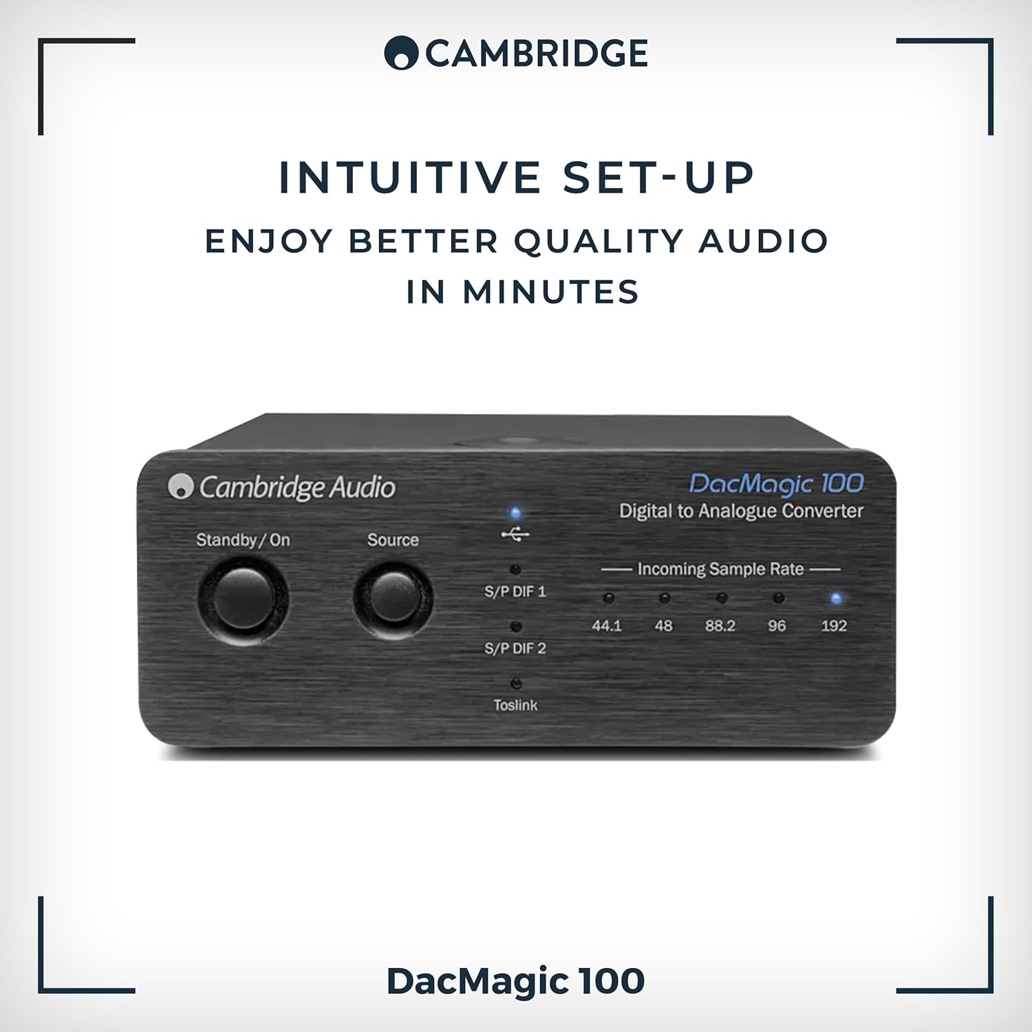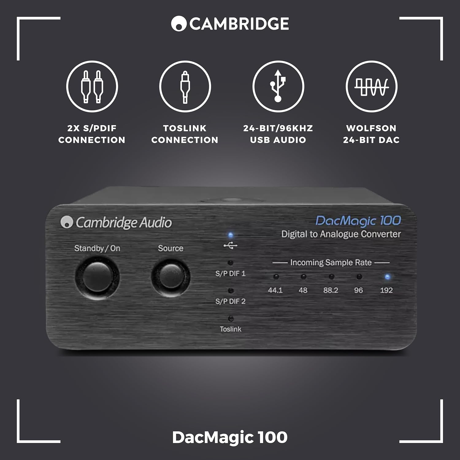 Cambridge Audio DacMagic 100 - Digital to Analogue Converter with Toslink, S/PDIF, and USB Inputs Featuring 24-bit Wolfson DAC - Black