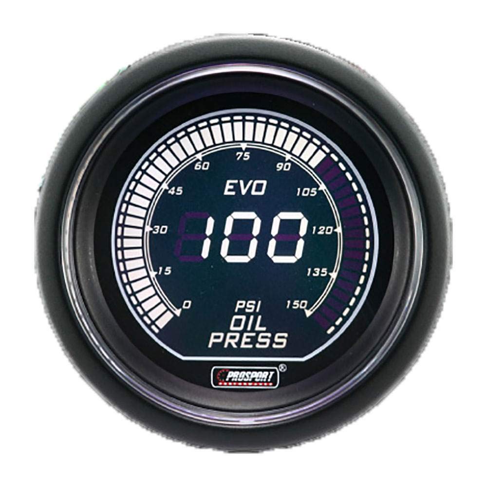 The Prosport EVO 52mm Electrical Oil Pressure Gauge offers real-time, precise PSI monitoring in a sleek, compact format designed for high-performance vehicles, tuners, and everyday drivers alike. Featuring selectable green or white LED backlighting, this gauge delivers clear, digital readings that stand out during both day and night driving. The included 1/8” NPT electric sender provides accurate oil pressure data without the need to run pressurized oil lines into the cabin, ensuring both safety and ease of installation. With its 2 1/16” diameter, the gauge fits standard pods and dash panels, making it ideal for custom builds or OEM replacements. Built to endure vibration, heat, and fluctuating engine conditions, it offers consistent performance across demanding environments. Whether you're monitoring pressure on a boosted engine, towing under load, or simply maintaining engine health, this EVO series gauge provides the essential data you need in a clean, modern package. Includes sender, harness, instructions, and mounting hardware