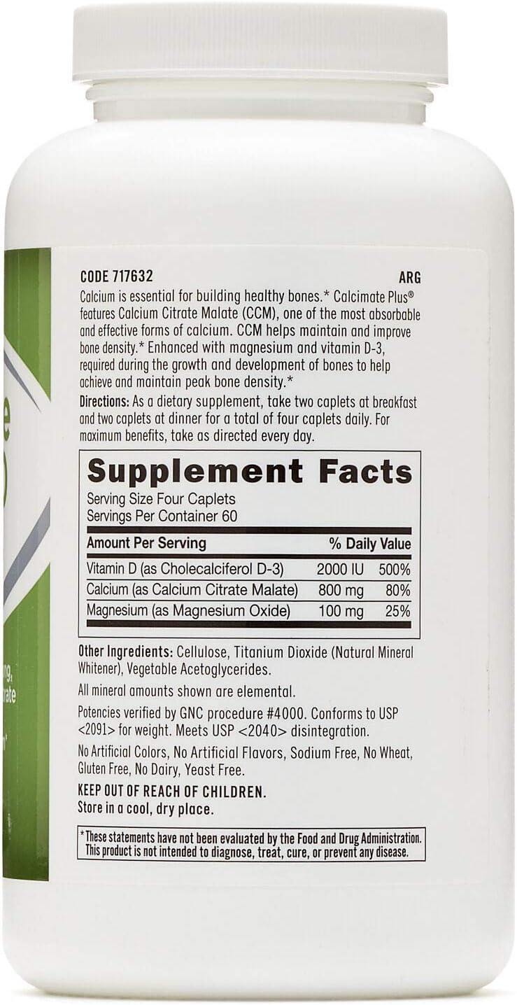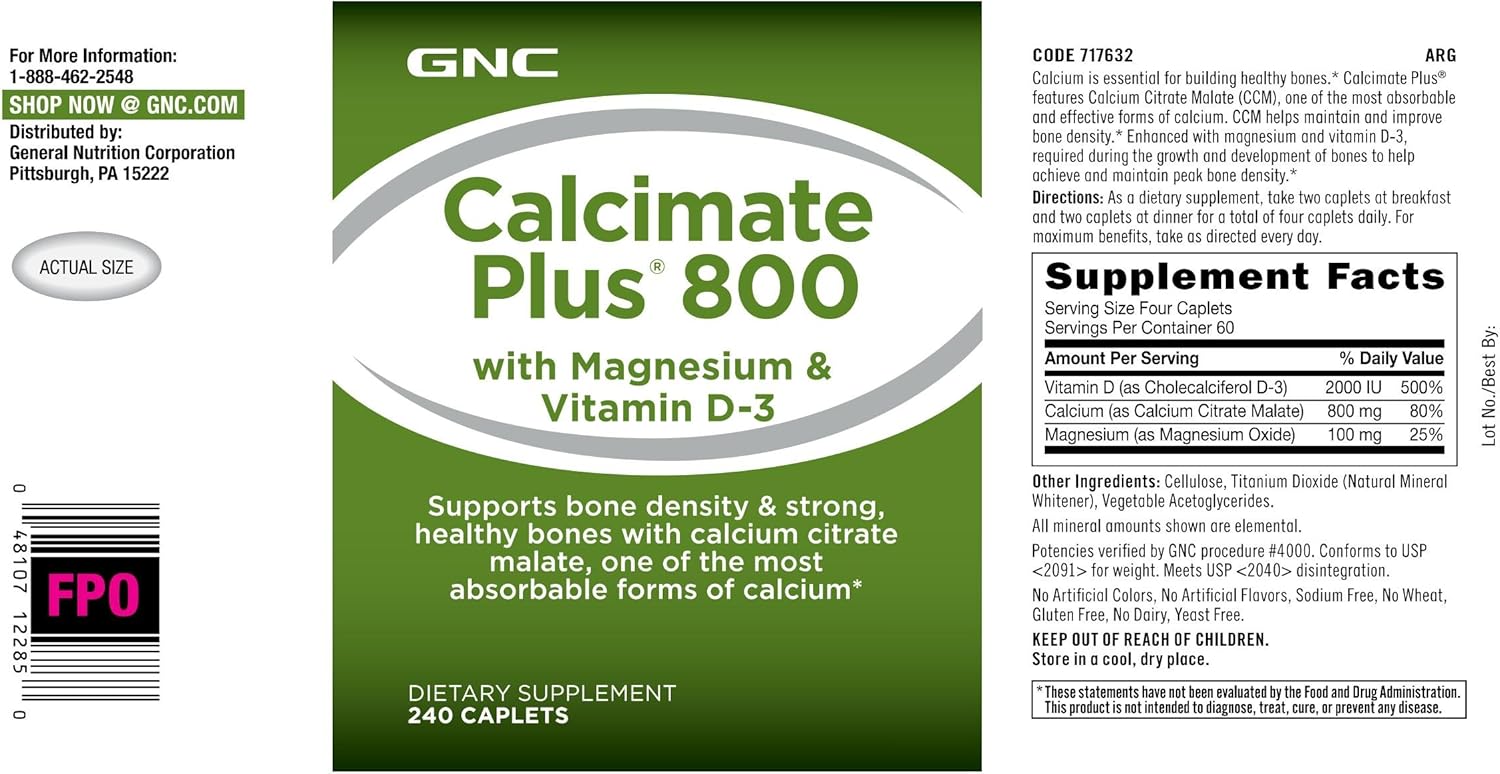 GNC Calcimate Plus 800 with Magnesium & Vitamin D-3, 240 Caplets, Supports Bone Density