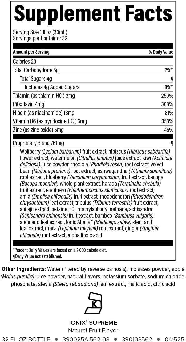 Isagenix Ionix Supreme - Bebida con Niacina, Vitamina B12, Vitamina B6 y Riboflavina para Ayudar a Combatir el Estrés - Botella de 32 Onzas (Sabor Natural a Fruta)