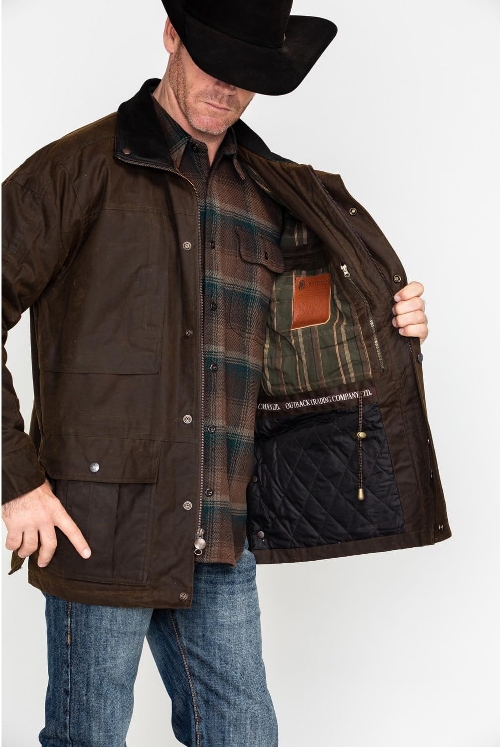 OUTBACK TRADING COMPANY MEN'S DEER HUNTER JACKETSince 1983, Outback Trading Company Ltd. has been building exceptional outdoor adventure outerwear - perfect for the cowboy, equestrian, and outdoorsman. Outback Trading Co. outerwear boasts tested wear in all kinds of rugged climates and weather conditions. Outback jackets, vests, coats and more stand up to your work, recreation, travel, and sport lifestyle with heavy-duty hardware, quality linings, and uniquely functional, weatherproof fabrics.Men’s Deer Hunter Jacket is specifically designed for the huntsman in mind, equipped with pleated pockets to extend to fit your essentials. FEATURES: - Waterproof & Breathable - Brass 2-way Zipper - Large Zip Chest Pockets - Dual Entry Hip Pockets - Inside Security Pocket - Concealment Pocket - Cotton Lining - Poly-Taffeta Lined Below Waist and inside sleeves