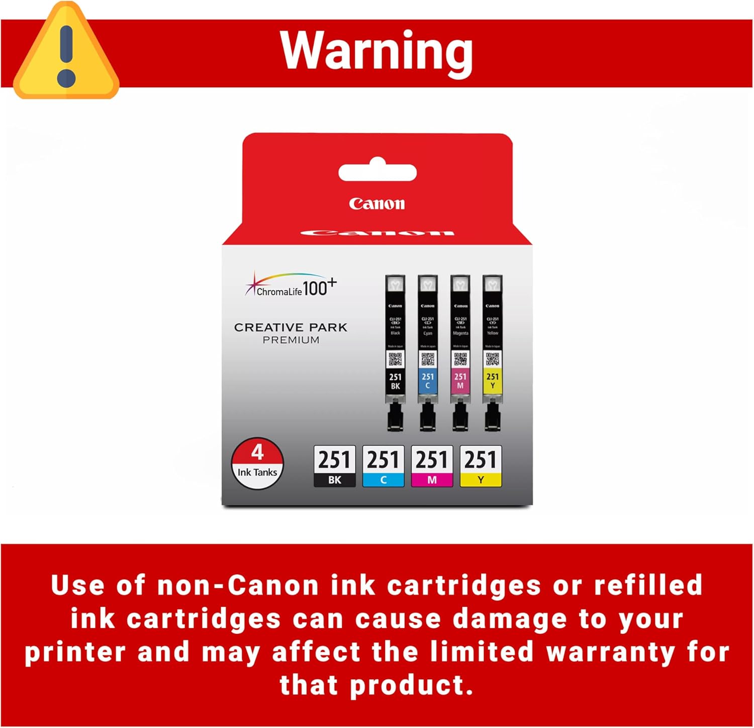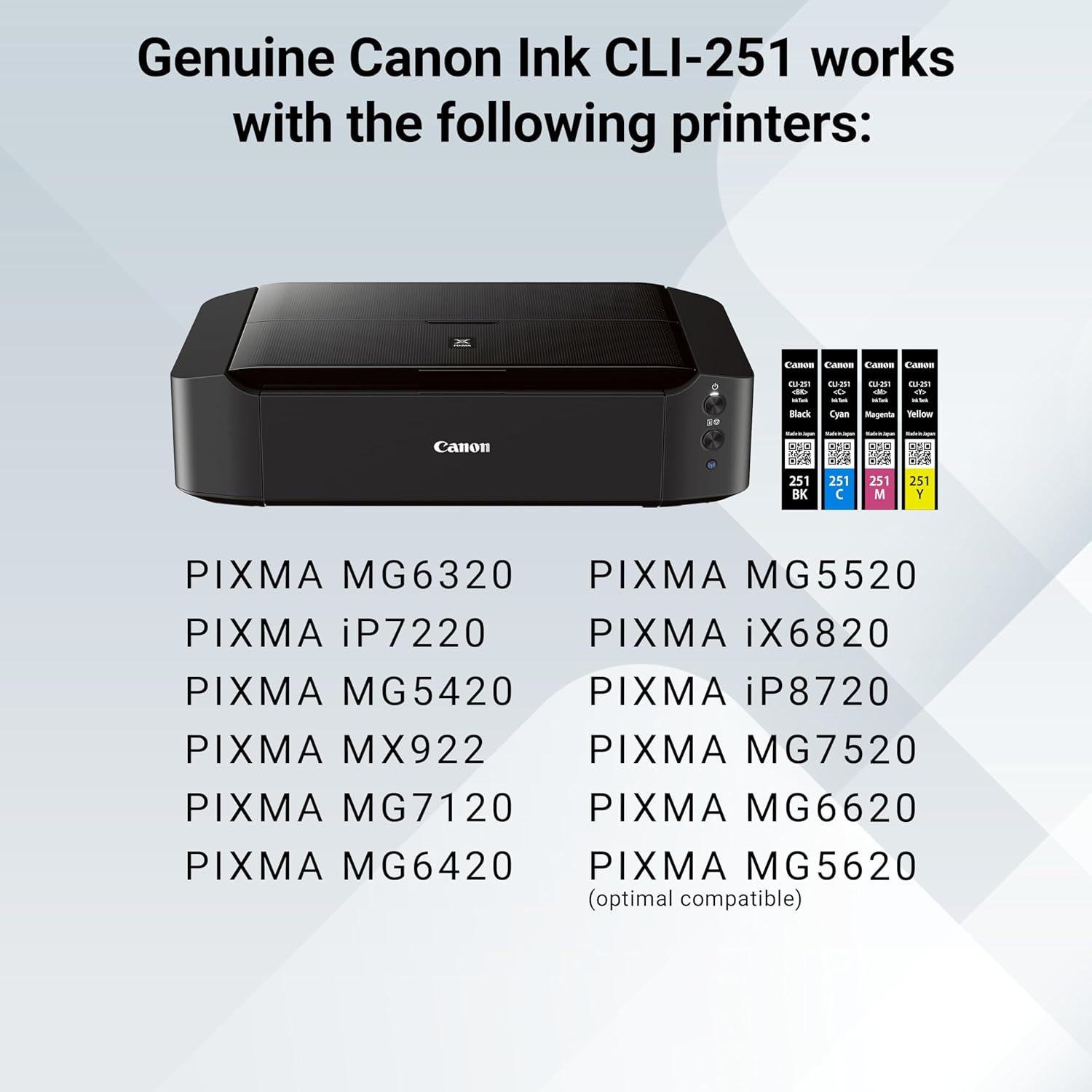 Canon CLI-251 BK/CMY 4PK Compatible to MG6320, iP7220, MG5420, MX922, MG7120, MG6420, MG5520, iX6820, iP8720, MG7520, MG6620, MG5620