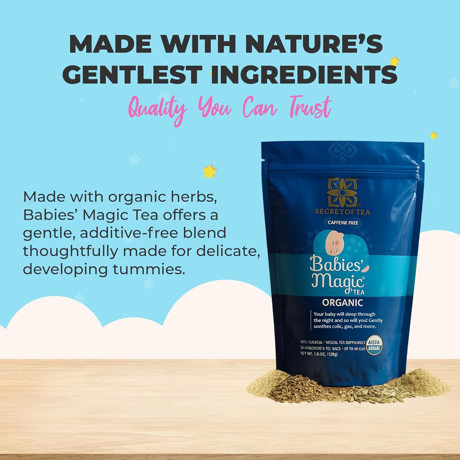 Secrets Of Tea - Babies' Magic Tea - USDA Organic, Caffeine-Free Herbal Blend for Baby Comfort, Supports Digestion & Soothing 20 Count (1 Pack)