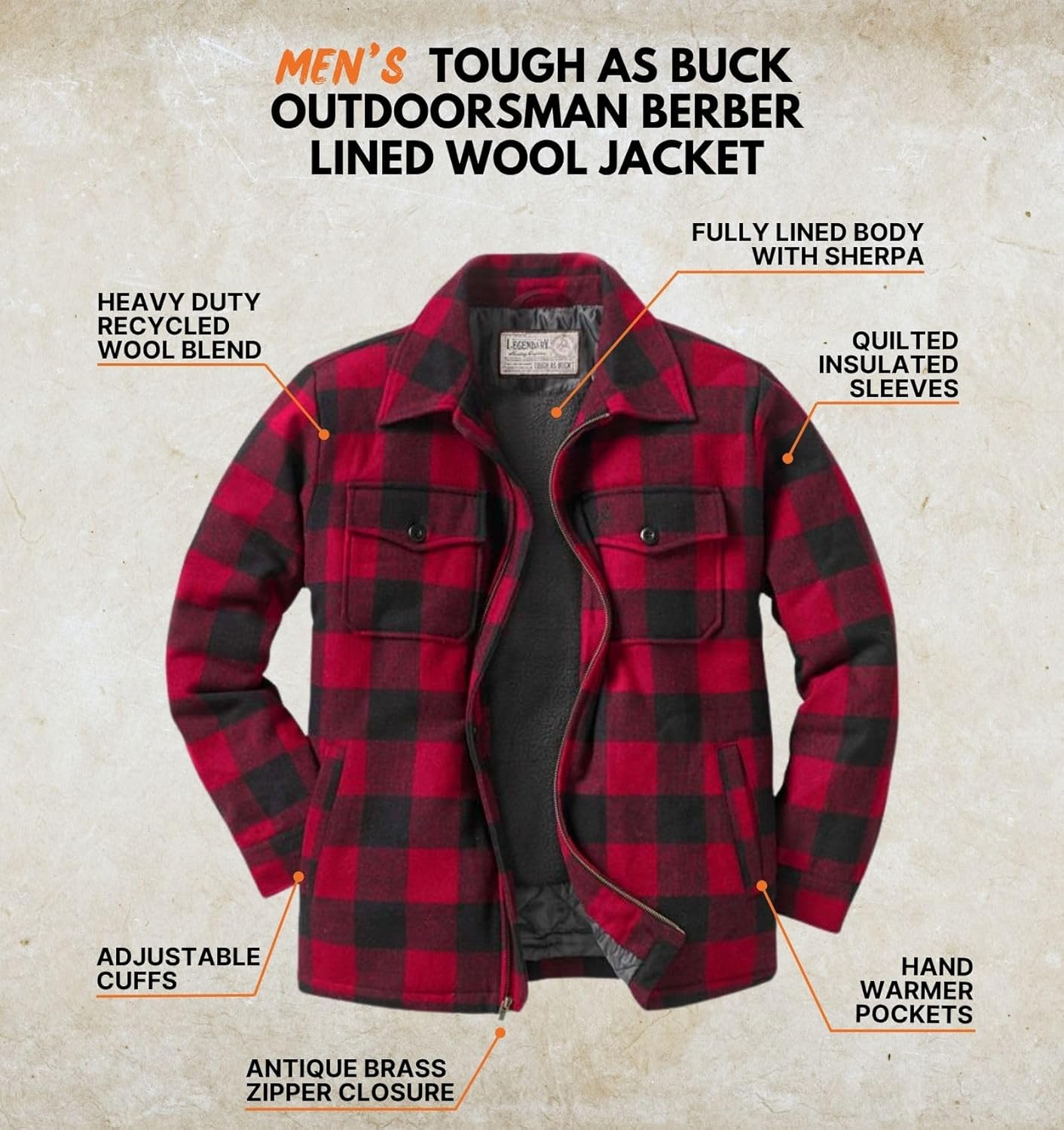 Chaqueta de lana para hombre Legendary Whitetails Outdoorsman, abrigo de invierno con forro bereber