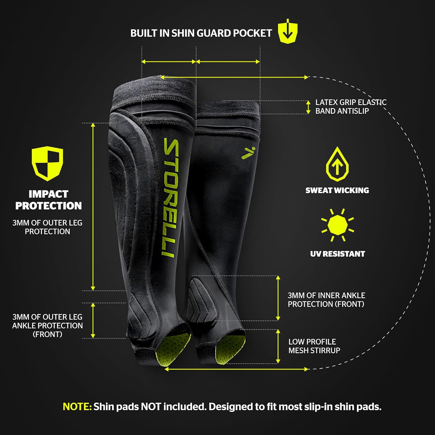 Storelli BodyShield Leg Guards, Premium Compression Shin Guard Sleeves for Soccer Players, UV-Resistant, Unisex, 1 Pair