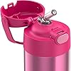 THERMOS FUNTAINER Botella de Agua con Pajita - 12 Onzas - Botella de Acero Inoxidable Termoaislada para Niños con Tapa, Rosa