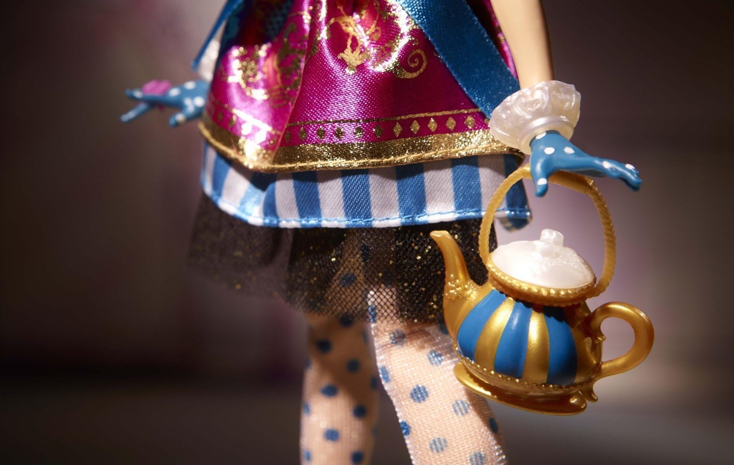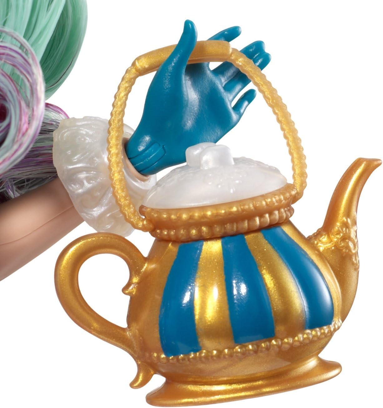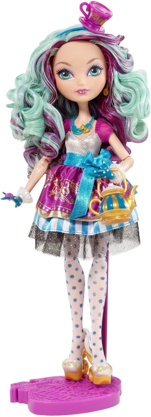 ¡Maddie es la mejor amiga que un cuento de hadas podría desear! Hija del Sombrerero Loco, la muñeca Madeline Hatter muestra su espíritu alegre con un atuendo de colores vivos con rayas y lunares, y accesorios para el té, como una tetera y una diadema con taza de té. Además, ¡viene con un marcapáginas que cuenta su versión exclusiva de la historia!