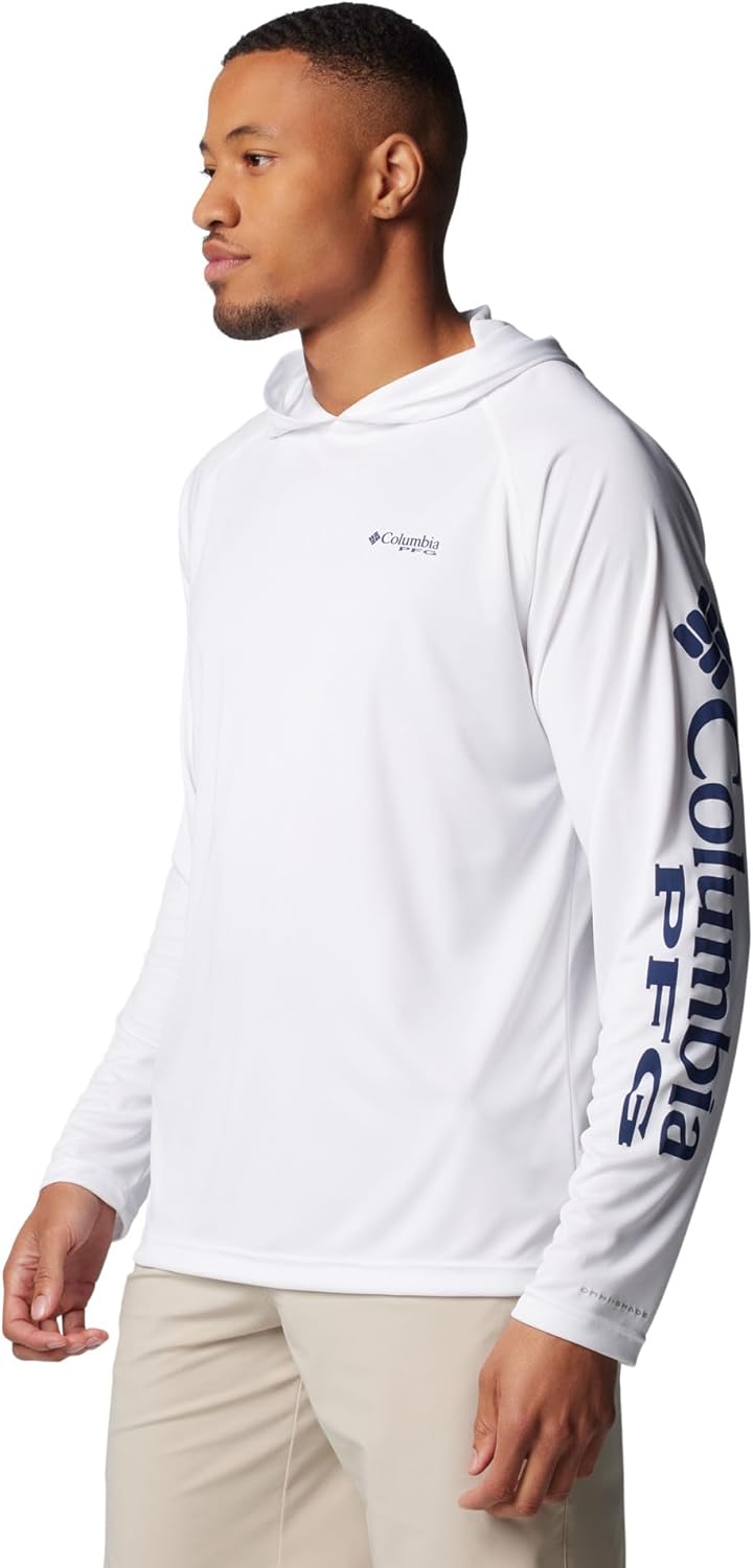 Una sudadera con capucha perfecta para pescadores: la Columbia PFG Terminal Tackle Hoodie es el artículo imprescindible para un día en el barco gracias a su tejido de secado rápido y protección solar. Esta sudadera con capucha es ligera pero duradera, sin importar el clima o la captura. Los materiales de alta calidad y la artesanía experta son la columna vertebral de la ropa masculina de Columbia. La tecnología que presenta esta sudadera es necesaria para cualquier día en el agua. La capa exterior está hecha de una combinación de los tejidos de protección característicos de Columbia: UPF 50 que bloquea y protege a tu pequeño de los rayos UVA y UVB dañinos que causan daño a la piel; el tejido de absorción avanzada extrae la humedad de la piel para que el sudor pueda evaporarse y puedas mantenerte fresco. La Columbia Terminal Tackle Hoodie también presenta un estilo discreto: nuestro logotipo característico corre a lo largo de la manga y el pecho. Columbia ofrece esta sudadera de pesca en múltiples colores y tallas básicos. Para asegurarte de que la talla que eliges es la correcta, utiliza nuestra tabla de tallas y las siguientes instrucciones de medición: Para las mangas, comienza en el centro de la parte posterior de tu cuello y mide a través del hombro y hacia abajo hasta la manga. Si obtienes un número parcial, redondea al siguiente número par. Para el pecho, mide en la parte más amplia del pecho, debajo de las axilas y sobre los omóplatos, manteniendo la cinta métrica firme y nivelada.