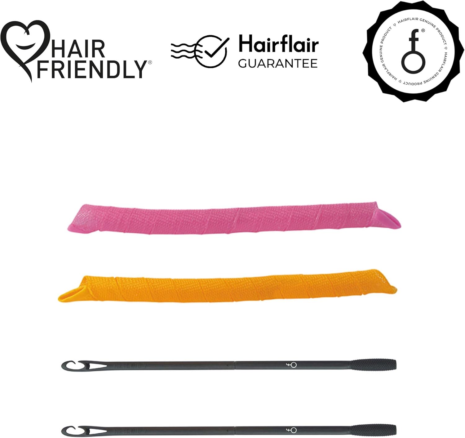 🌺 HIGH QUALITY HAIR CURLERS: The pack contains 40 salon-quality Spiral Curlformer hair curlers in 2 directions of curl; 20 pink for clockwise curls and 20 orange for anti-clockwise curls + 2 Styling Hooks + a luxury satin vanity case and step-by-step instructions. Genuine Curlformers by Hair Flair successfully conform to USA Regulations and EU REACH Regulations on plastics and heavy metals.