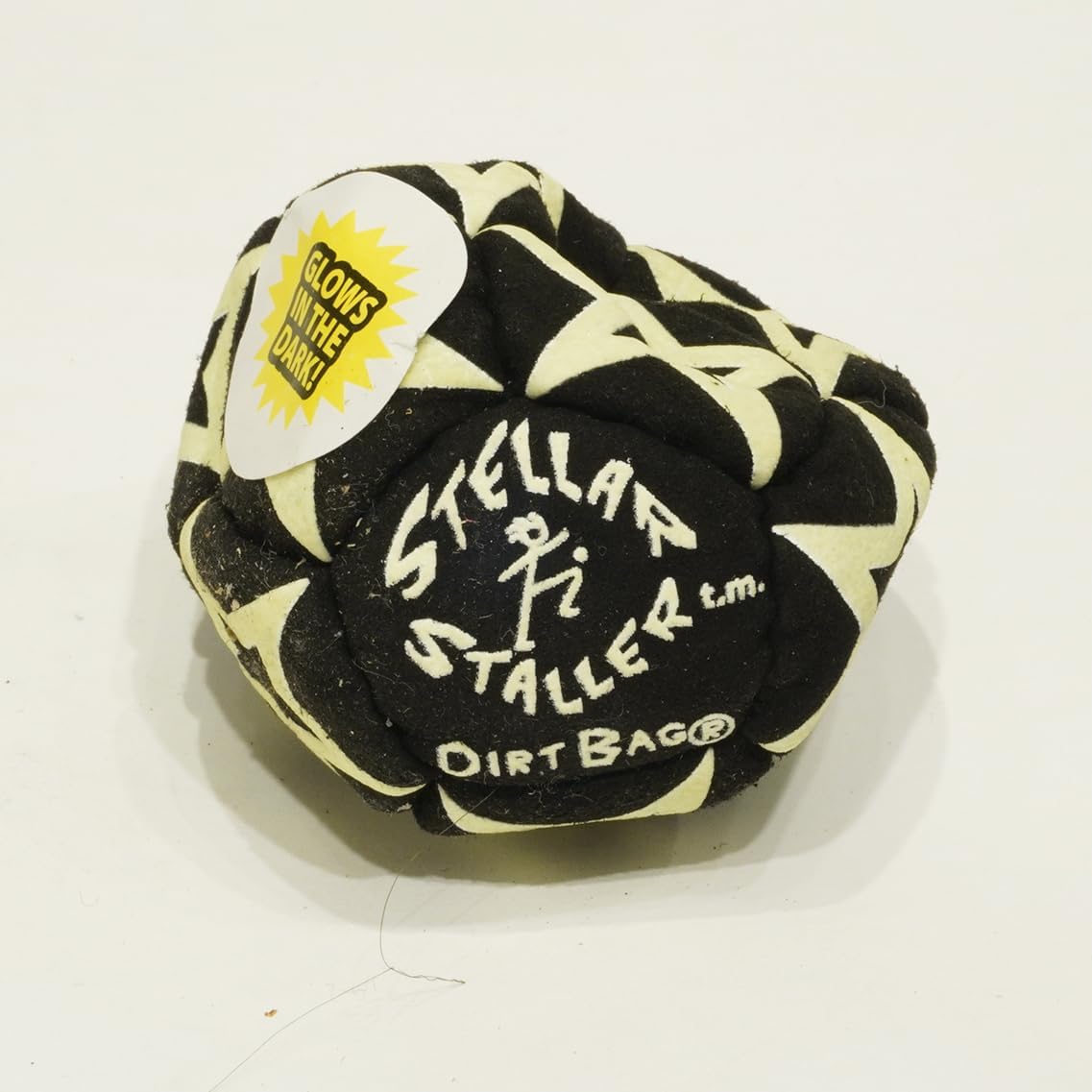 The Dirtbag Stellar Stallar footbag is an absolute one-of-a-kind. Not only is it the only footbag with a combination filler of sand, steel ball bearings and plastic pellets - but it's also a light activated glow in the dark footbag. Night time play is so much more satisfying when you can actually see the footbag. This 12-panel synthetic suede footbag is ideal for freestyle fun, 24 hours a day.