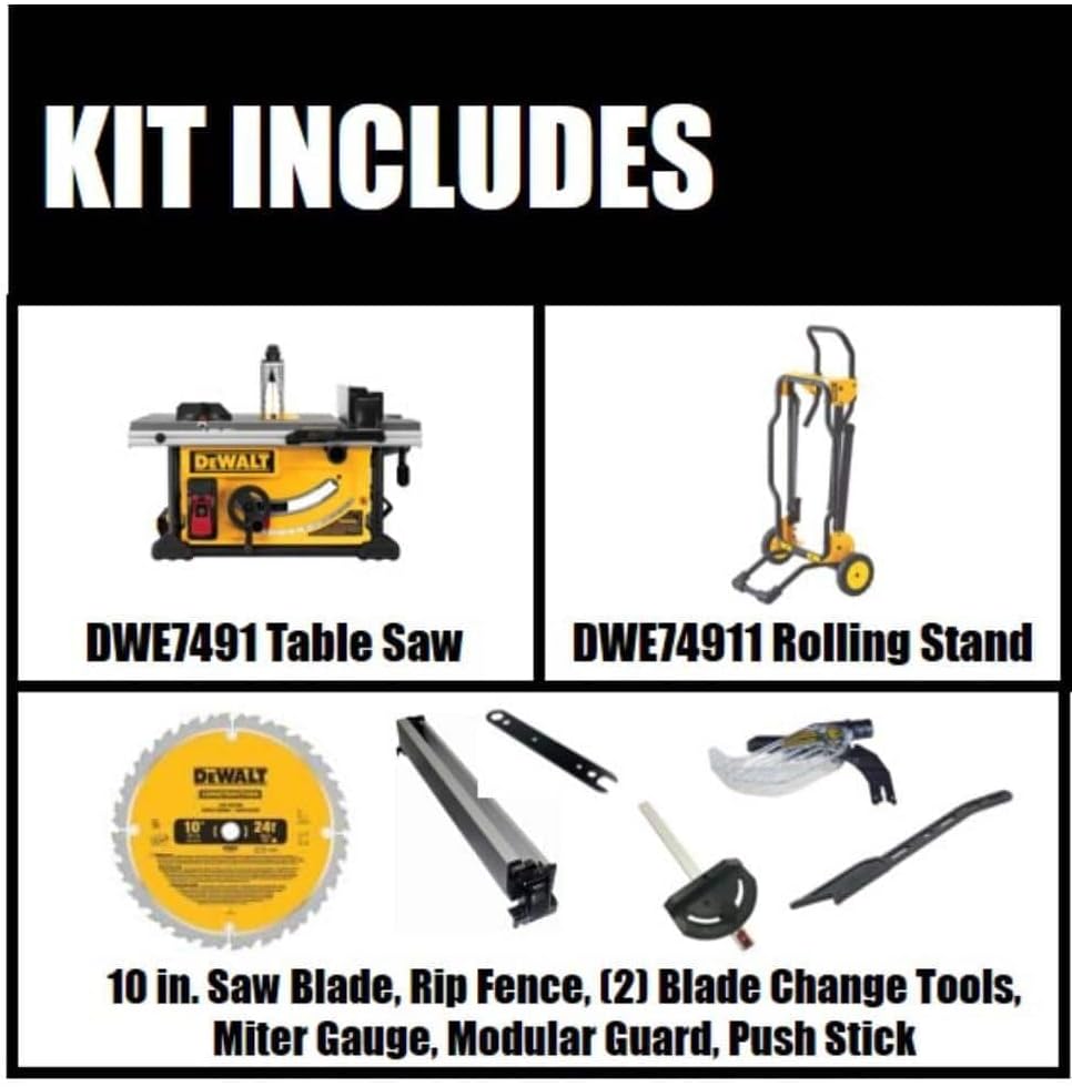 DEWALT Table Saw 10 Inch with Foldable Rolling Table Saw Stand, 15 Amp, 4800 RPM, 32-1/2-Inch Rip Capacity (DWE7491RS)