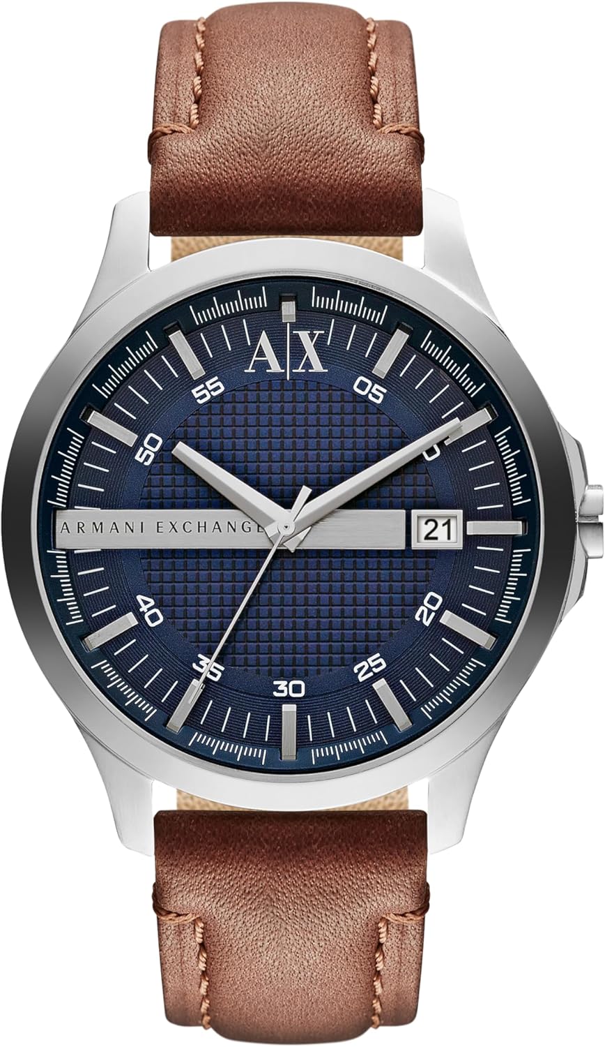 Reloj de hombre A|X Armani Exchange con pantalla analógica de tres agujas y ventana de fecha, reloj para hombre con correa de acero inoxidable o cuero