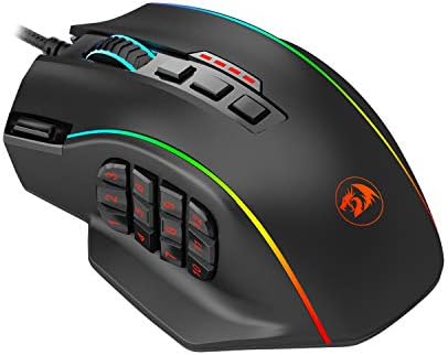 Redragon M901 Gaming Mouse RGB Backlit MMO 19 Macro Programmable Buttons with Weight Tuning Set, 12400 DPI for Windows PC Computer (Wired, Black)