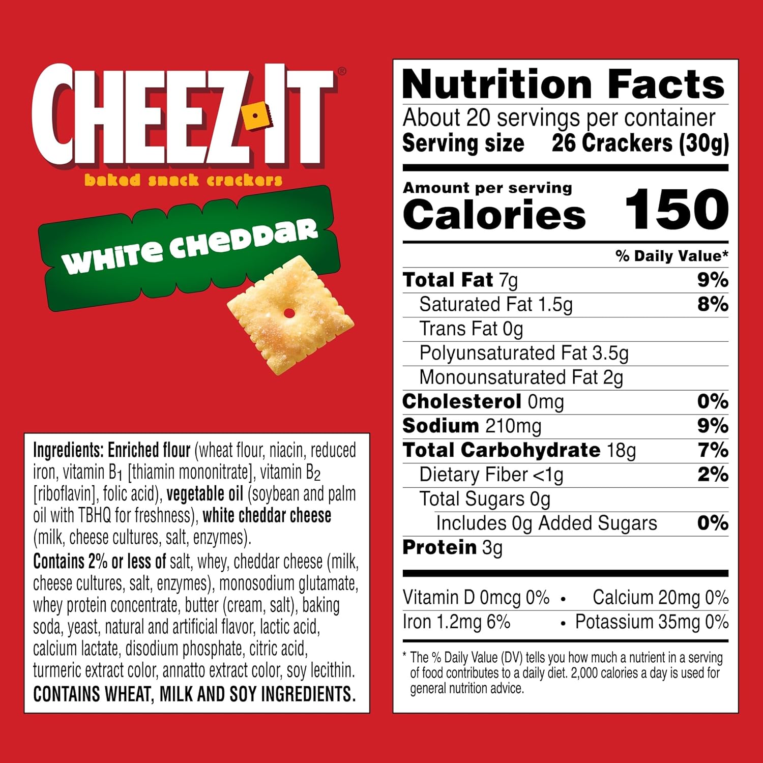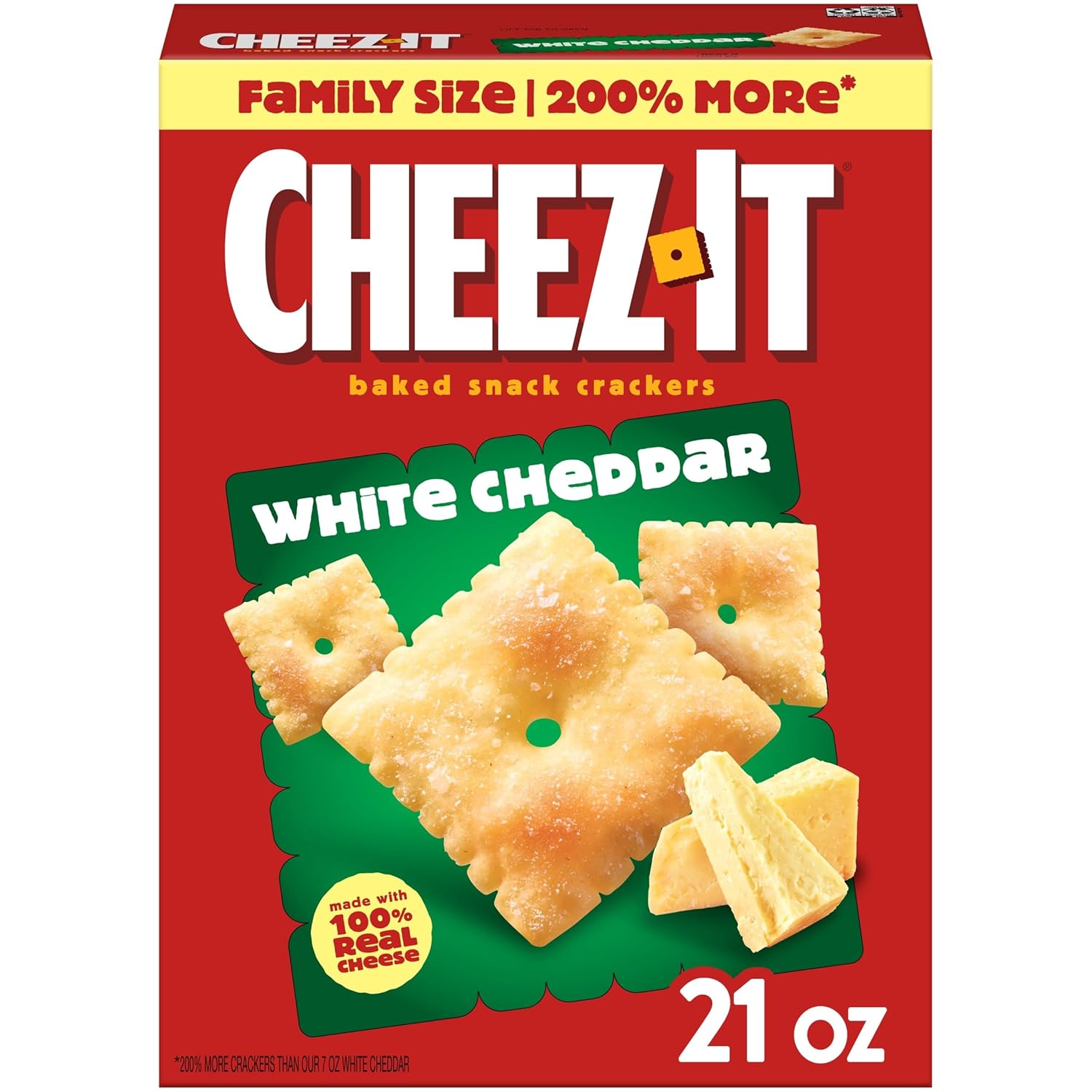 Galletas de queso Cheez-It, galletas horneadas, aperitivos para el almuerzo, tamaño familiar, queso cheddar blanco, caja de 21 oz (1 caja)