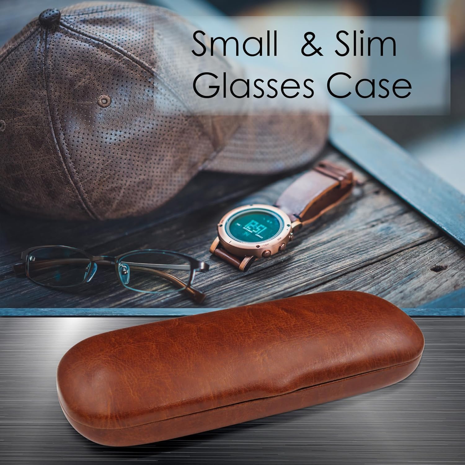 MyEyeglassCase Men Small Glasses case - Eyeglasses Hard Shell Holder Pouch & Cloth-Reading Slim & Narrow Case Heavy Duty