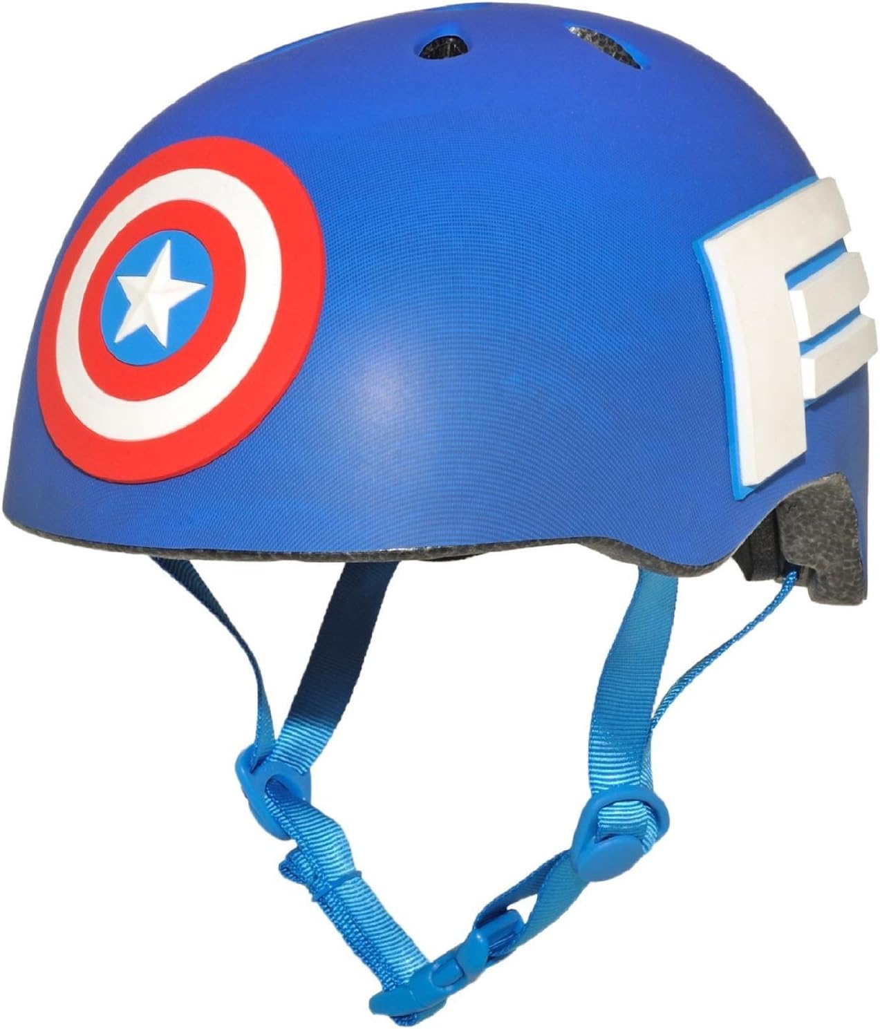 Hit the trails with your new Captain America MS helmet. This helmet features 9 vents to keep heads cool, side squeeze buckles for easy adjustment and of course super fun Captain American graphics that all kids will love.