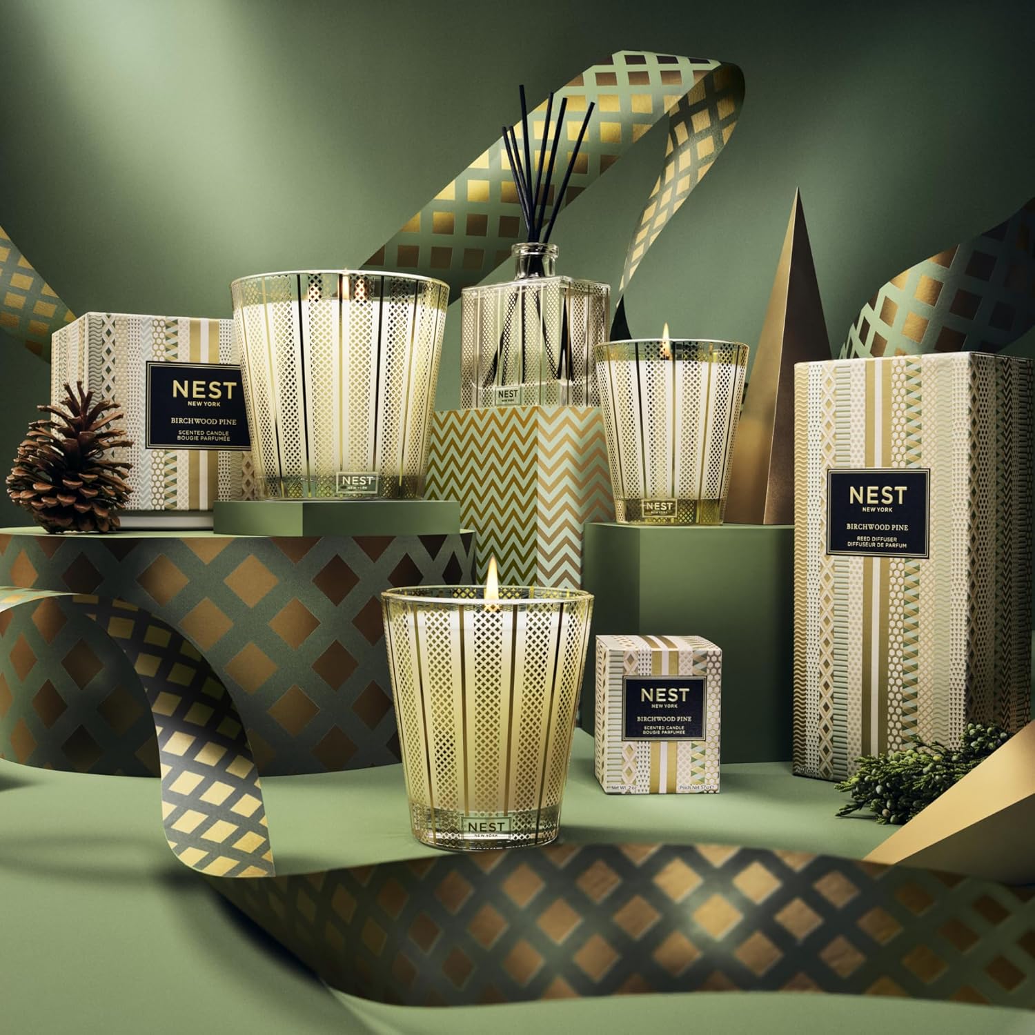 NEST New York Scented Grand Candle, Birchwood Pine - 77 oz - Up to 175-Hour Burn Time - Reusable Glass Vessel