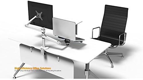*BETTER ERGONOMICS: The screen can freely swivel 360 degree, and easily adjust the monitor and laptop to the most comfortable position,monitor mounting arm offers 145 degree tilt, the maximum extension length up to 52cm/20.5", reach the height of 56cm/21.8", Laptop mounting arm offers 60 degree tilt, the maximum height up to 56cm/21.8".