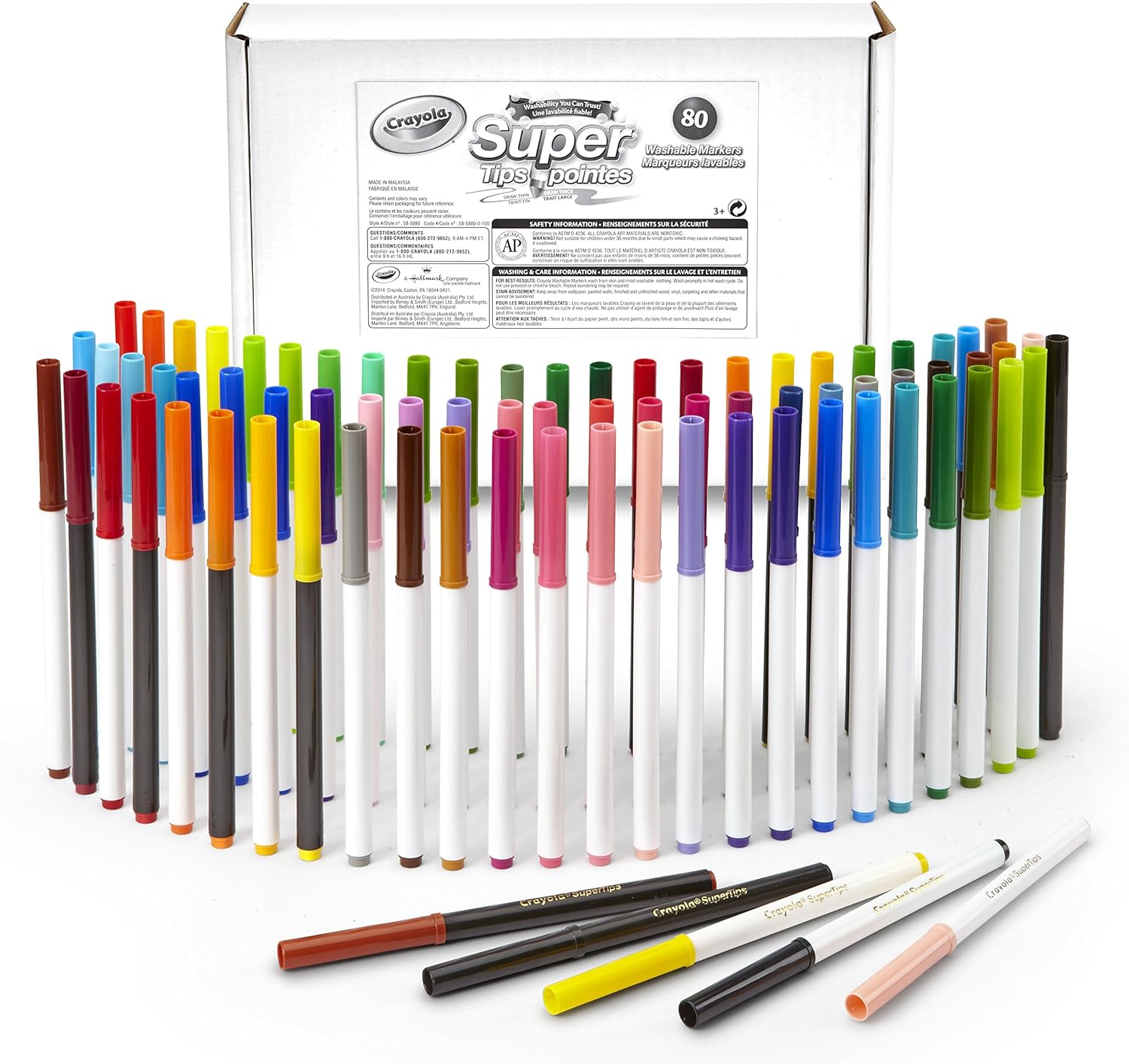 Marcadores lavables Crayola Super Tips, juego de 80 unidades 43 colores únicos con dobles de tus 25 colores favoritos y 12 tonos perfumados, herramientas de arte para niños y bebés de 3 años en adelante