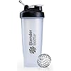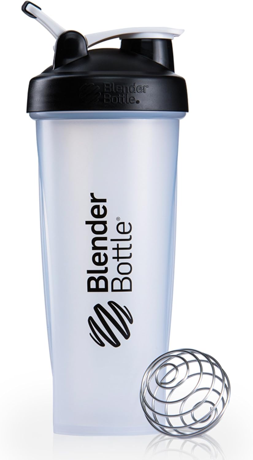 The BlenderBottle Classic 32-Ounce Shaker Cup makes it easy to maintain proper nutrition and hydration on-the-go. Featuring a patented mixing system—with a 316 surgical-grade stainless steel BlenderBall wire whisk (found only in BlenderBottle brand shaker cups) that moves freely inside the bottle to smooth out drink mixes and meal ingredients—it’s ideal for protein shakes, smoothies, fiber drinks, and meal replacements. It’s also a handy kitchen tool for mixing pancake batter, scrambled eggs, and salad dressings. The wide mouth makes it easy to add scoops of powdered mixes, meal ingredients, and liquids, and embossed markings show both ounces and milliliters for easy measuring anywhere (note that markings on the 32-ounce capacity shaker cup only go up to 24 ounces). Bottle contents and liquids are securely contained thanks to a tightly threaded screw-on lid that creates a leakproof seal, and a flip cap that snaps securely shut for shaking and transportation. The convenient loop top makes it easy to carry the bottle and offers a place to attach car keys while at the gym. The BlenderBottle Classic 32-Ounce Shaker Bottle can also be used as a water bottle; the ball can be left inside, as it will never rust, chip, or peel. BPA and phthalate-free, dishwasher safe. Manufacturer’s limited lifetime warranty.