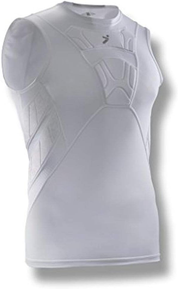 UNMATCHED IMPACT PROTECTION: BodyShield Sleeveless Undershirt absorbs up to 90% of impact; Made with 3mm XRD Extreme Impact Protection ergonomic rib pads; Equipped with slow rebound chest pad for ease of chest trapping; Prevents bruises, cuts and contusions; Ideal for soccer and heavy-duty sports