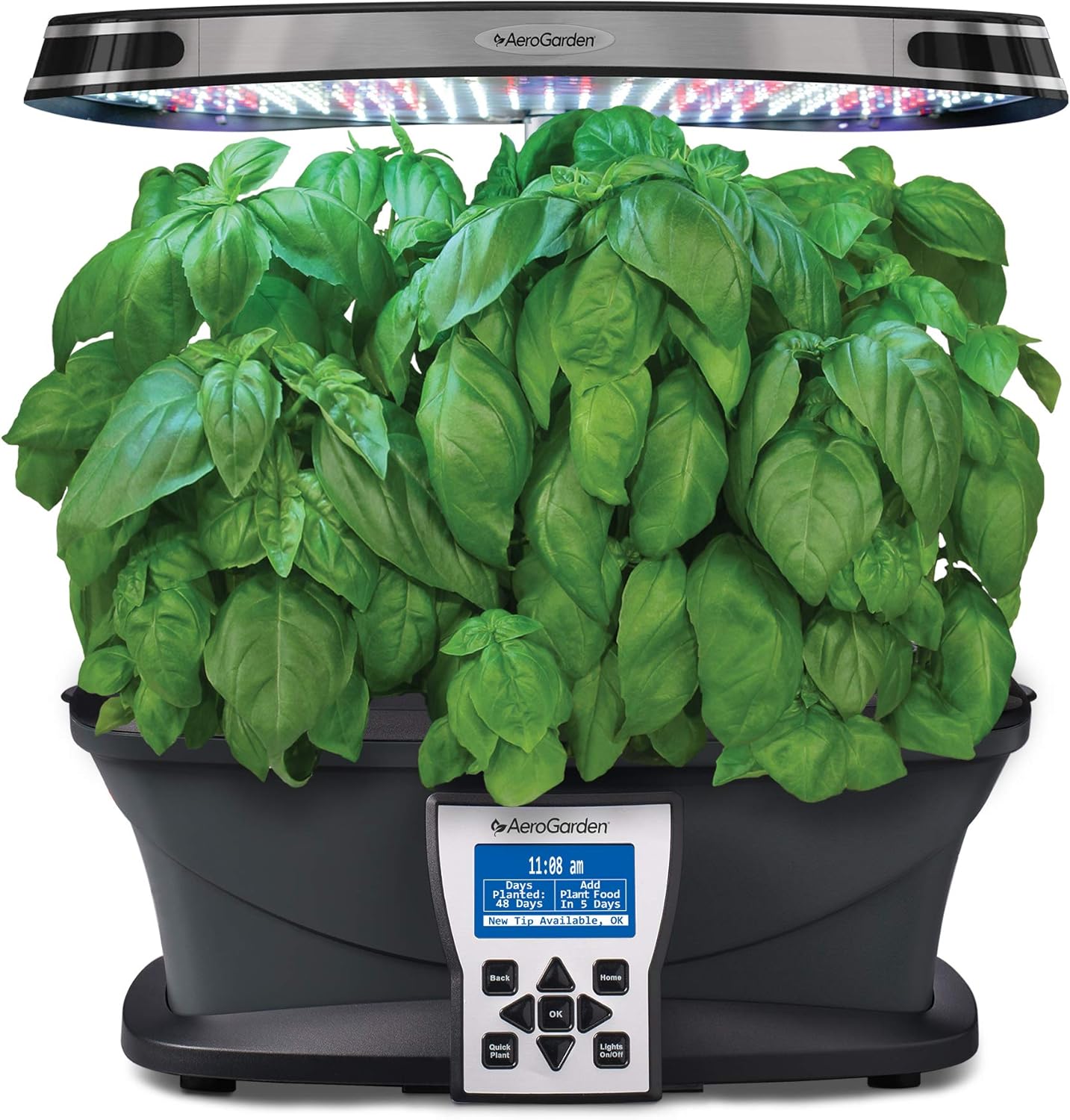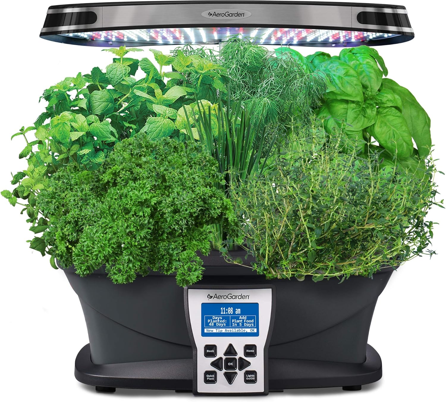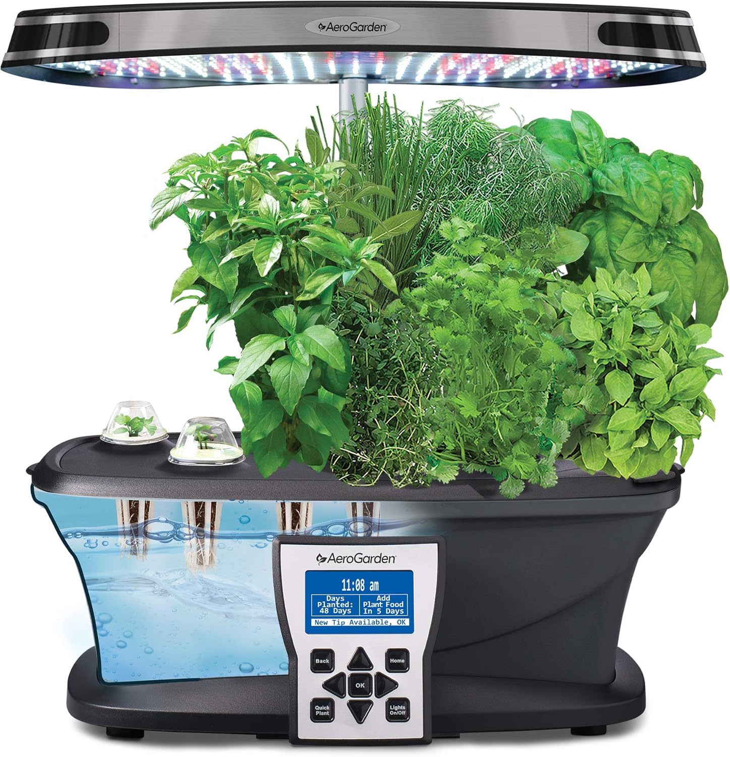 Imagine fresh herbs and vegetables grown in your home, year-round. With the Miracle-Gro AeroGarden Ultra you can grow fresh herbs, vegetables, salad greens, flowers and more! This smart countertop garden uses water and patented nutrients to naturally grow plants… no herbicides, no pesticides, non-GMO. It s natural goodness right at your fingertips. AeroGardens are the world s leading indoor gardening systems. You can grow up to 7 plants in this garden and they ll love the 30 watts of high performance, energy efficient LED lighting. The LED lights are tuned to the specific spectrum that allows plants to maximize photosynthesis, resulting in rapid, natural growth and abundant harvests. The LED lights concentrate daylight white LEDs for fast growth, blue LEDs for bigger yields, and red LEDs for more flowers and fruit. With ideal lighting and optimally balanced levels of water and nutrients, plants grow up to 5 times faster than when grown in soil. The Ultra s easy-to-use control panel has an interactive LCD screen display that utilizes simple prompts to guide you from setup to harvest, and provides helpful gardening tips. It also creates optimal conditions for your plants by automatically turning the lights on and off and reminding you when to add water and nutrients. The AeroGarden Ultra sets up in minutes without tools. Just insert the Seed Pods in your garden, add water and nutrients, and then watch it grow! Everything you need to start growing is included.