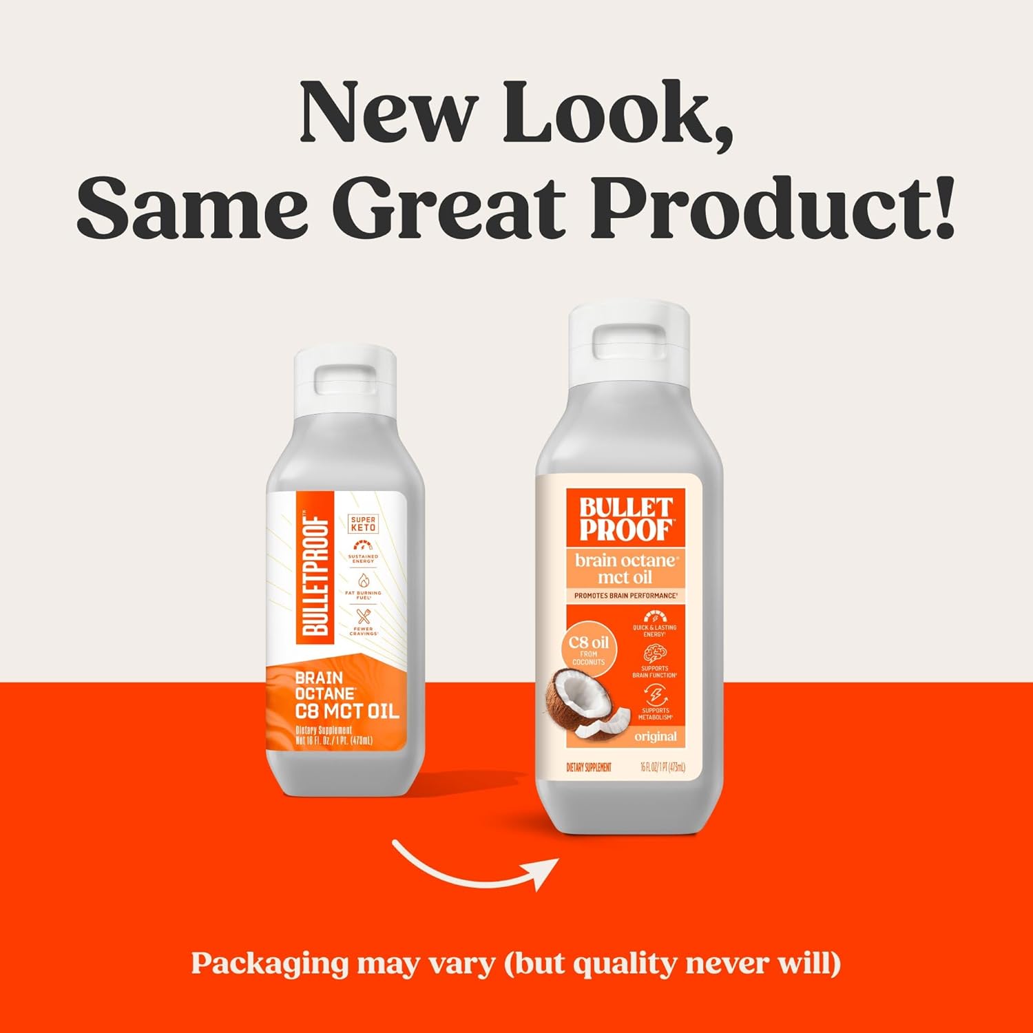 Aceite de MCT de Coco Octano C8 a Prueba de Balas, 16 Onzas, Suplemento Keto Premium para Energía Sostenida y Menos Antojos, Combustible para Cerebro y Cuerpo, Sin Sabor, Agregar a Café y Batidos