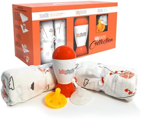 EL CONJUNTO DE REGALO ULTIMO - Nuestra colección incluye el Baby Shusher, 2 chupetones Shushie para bebés de 0 a 6 meses y 2 suaves mantas de muselina 100% algodón; el regalo perfecto para la fiesta de bebé para nuevos padres