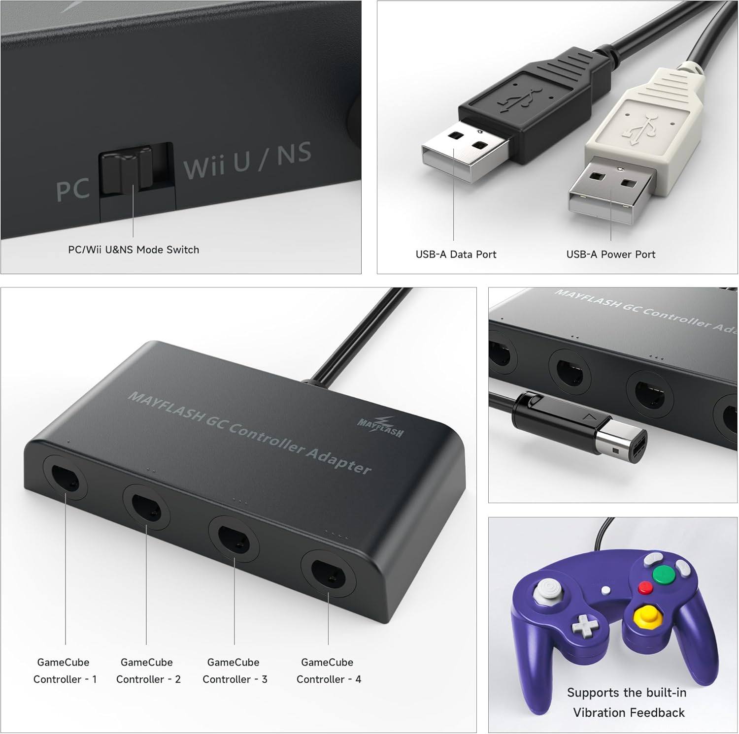 Adaptador de controlador de Gamecube MAYFLASH para Wii U, PC Windows y Switch/Switch 2, 4 puertos