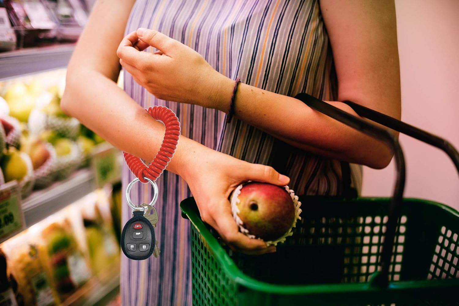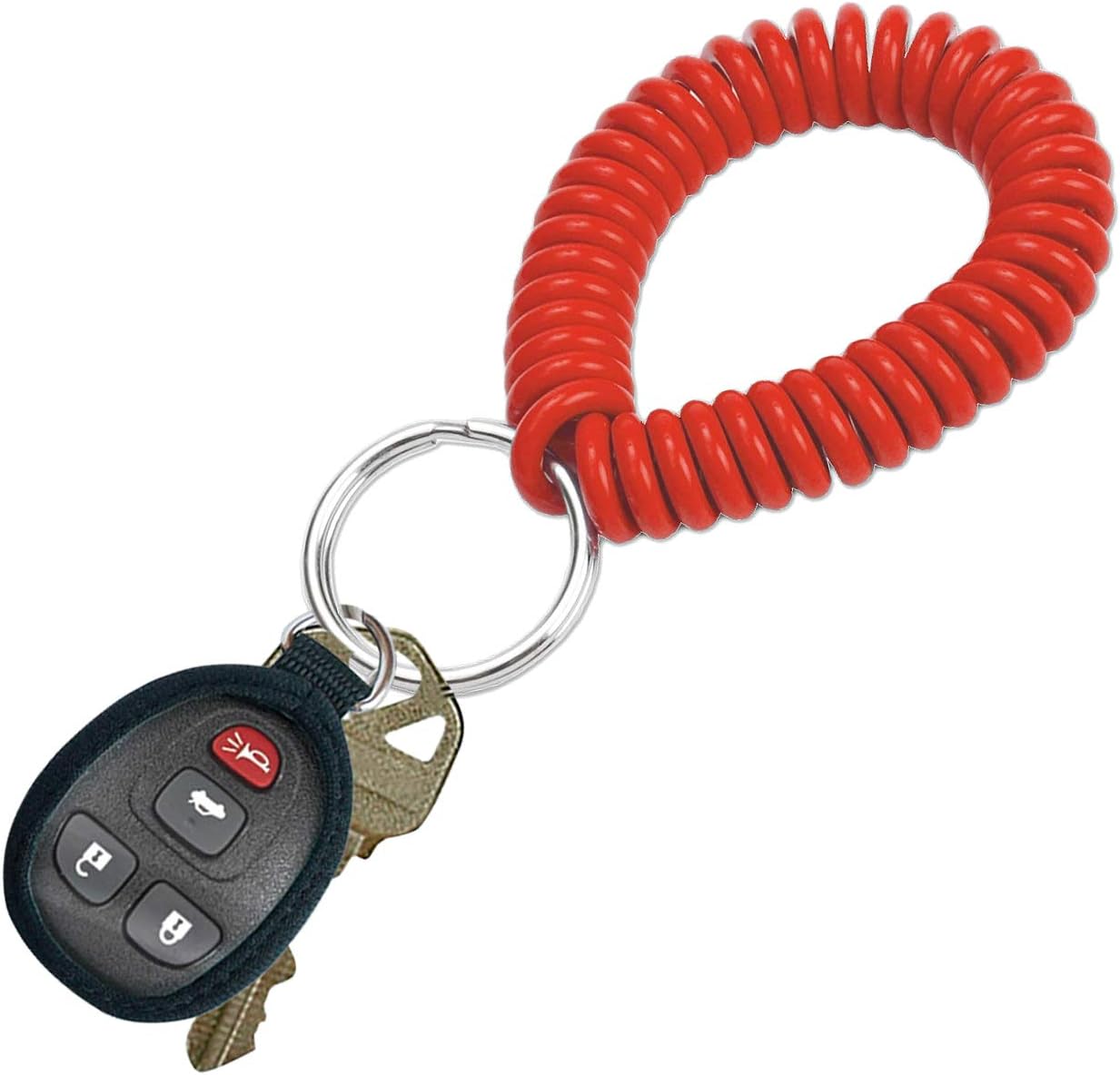 Materiales premium: resorte de calidad superior que se recupere flexible y nunca pierda su forma. Se ajusta cómodamente sobre la muñeca para ejercicio, deportes acuáticos, gimnasio, tarjetas de identificación y más. Construido para durar y manejar cualquier accesorio que necesites llevar contigo a diario. Diseño fuerte y ligero es resistente al agua y permite que el llavero se adhiera fácilmente a los artículos.