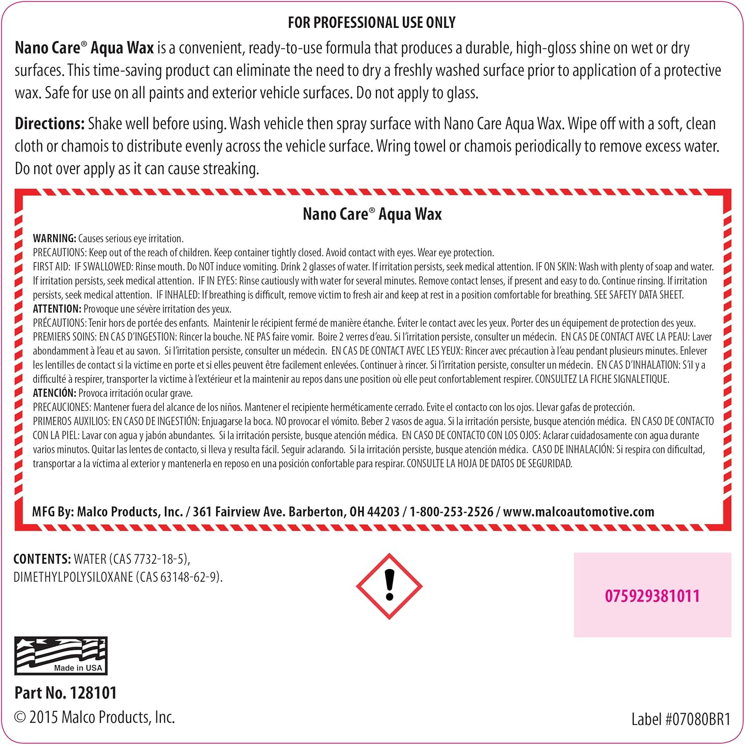 Malco Nano Care Aqua Wax - Time Saving Protective Wax for Your Vehicle / Can be Applied to Freshly Washed Vehicle / Provides Long-Lasting, High-Gloss Shine / 1 Gallon (128101)
