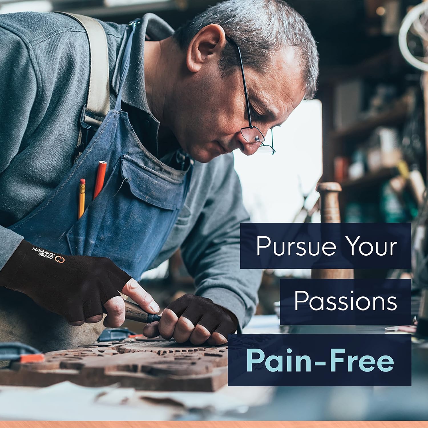 ENCUENTRA LA FUERZA PARA SANAR. Los Guantes de Artritis de Compresión de Copper Compression te proporcionan la compresión que necesitas para ayudar a reducir la hinchazón y la presión, aumentar el flujo sanguíneo, restringir la acumulación excesiva de líquido y aliviar el dolor y la molestia en las articulaciones. El valor terapéutico de estos guantes sin dedos proporciona apoyo en el manejo de condiciones médicas como: artritis, túnel carpiano, tendinitis, escritura, mensajes de texto, dolor de pulgar y lesiones por esfuerzo repetitivo.