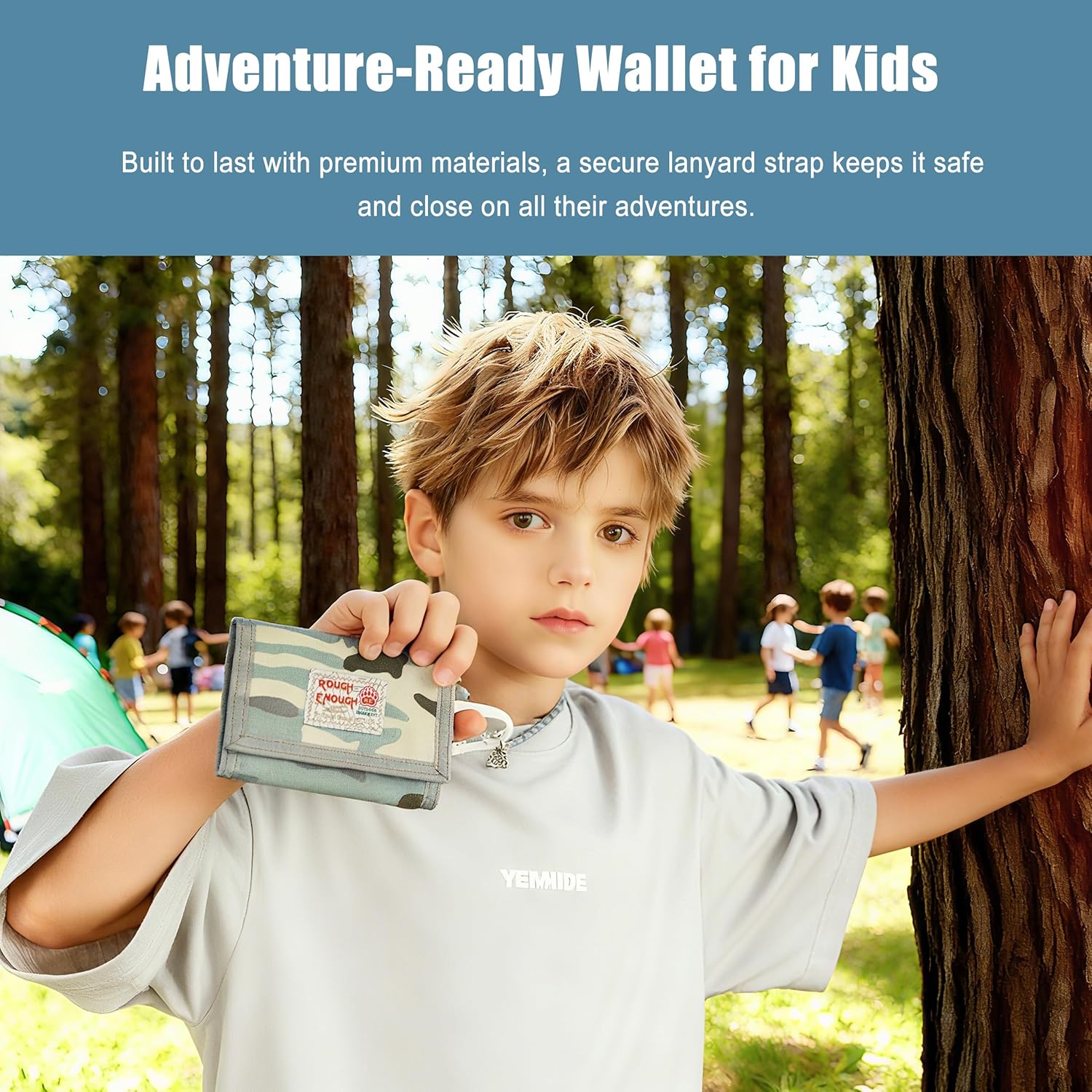 Sturdy & Stylish: Crafted from heavy-duty camo canvas, smooth Japanese YKK zippers and strong hook and loop closure, this kids wallet for boys combines tough durability with a trendy light blue camo design, good for active boys, teens and young men