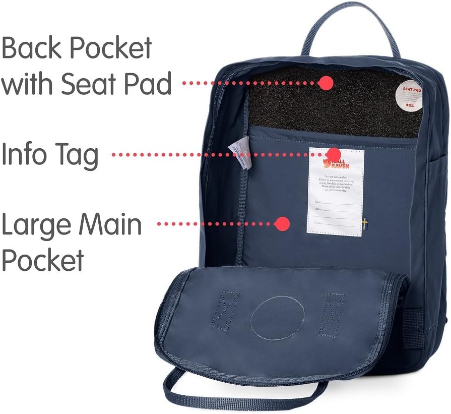 ICONIC: Classic Kanken with a twist. Same design, updated size. Stash your 17" laptop in its own padded compartment and still have the main compartment and 3 extra pockets for everything else.