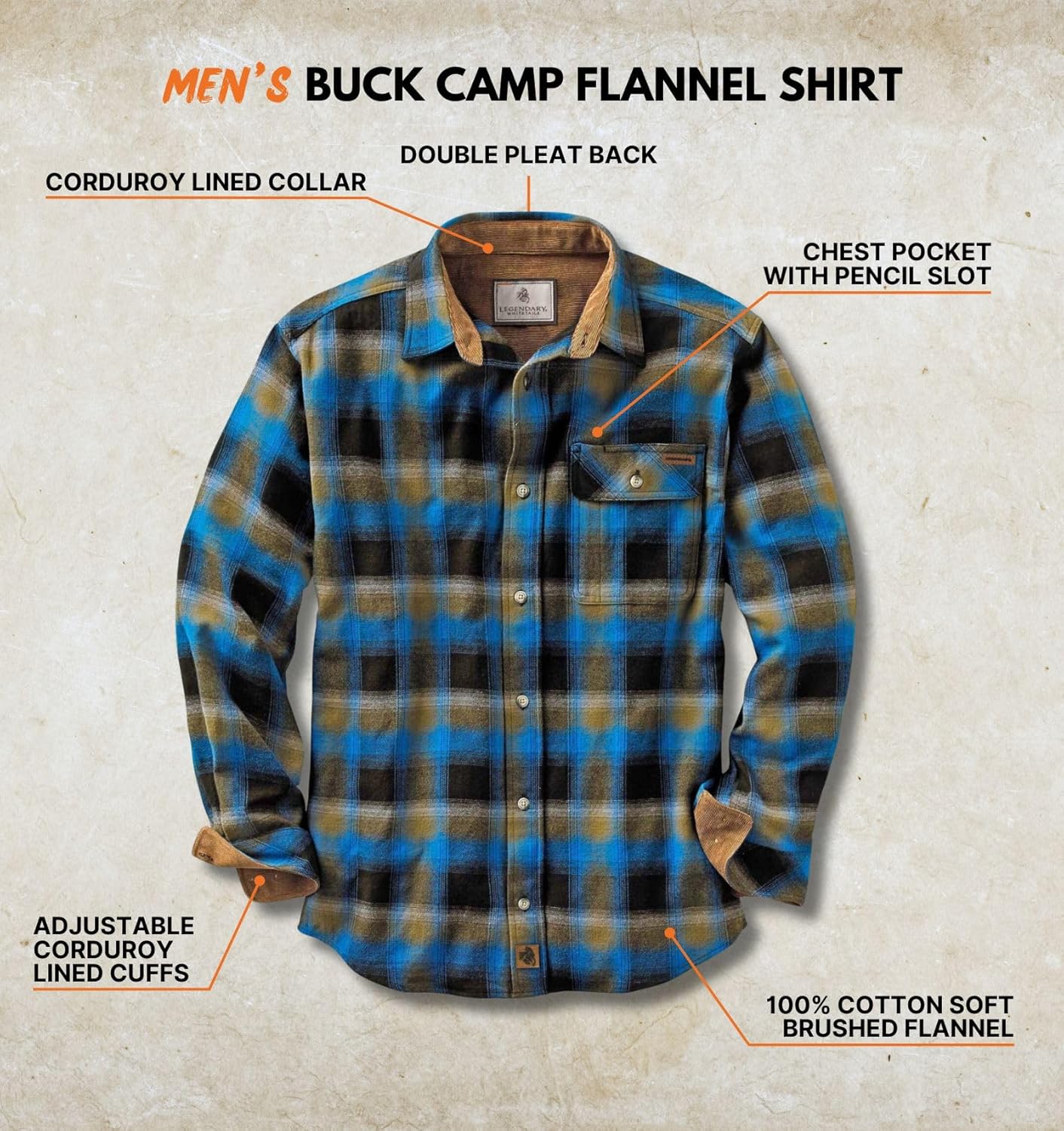 Camiseta de franela para hombre Legendary Whitetails, manga larga con botón, 100% algodón
