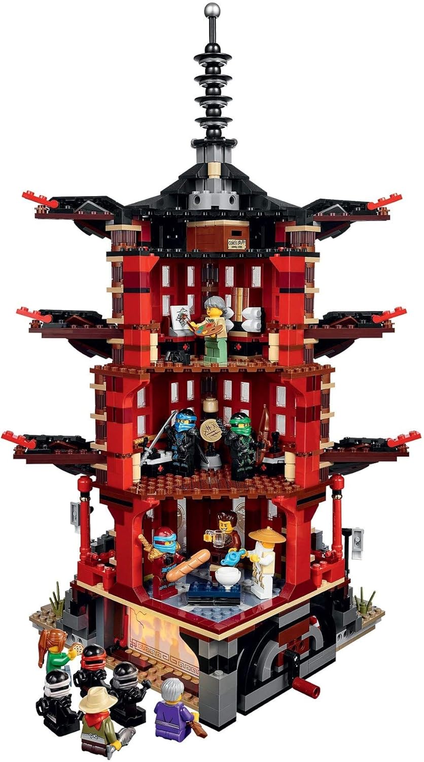 ¡Disfruta de la experiencia de construcción LEGO NINJAGO definitiva mientras construyes el majestuoso Templo del Airjitzu y el pueblo circundante! El edificio del Templo altamente detallado tiene muchas características arquitectónicas encantadoras incluyendo ventanas ornamentadas y puertas corredizas.