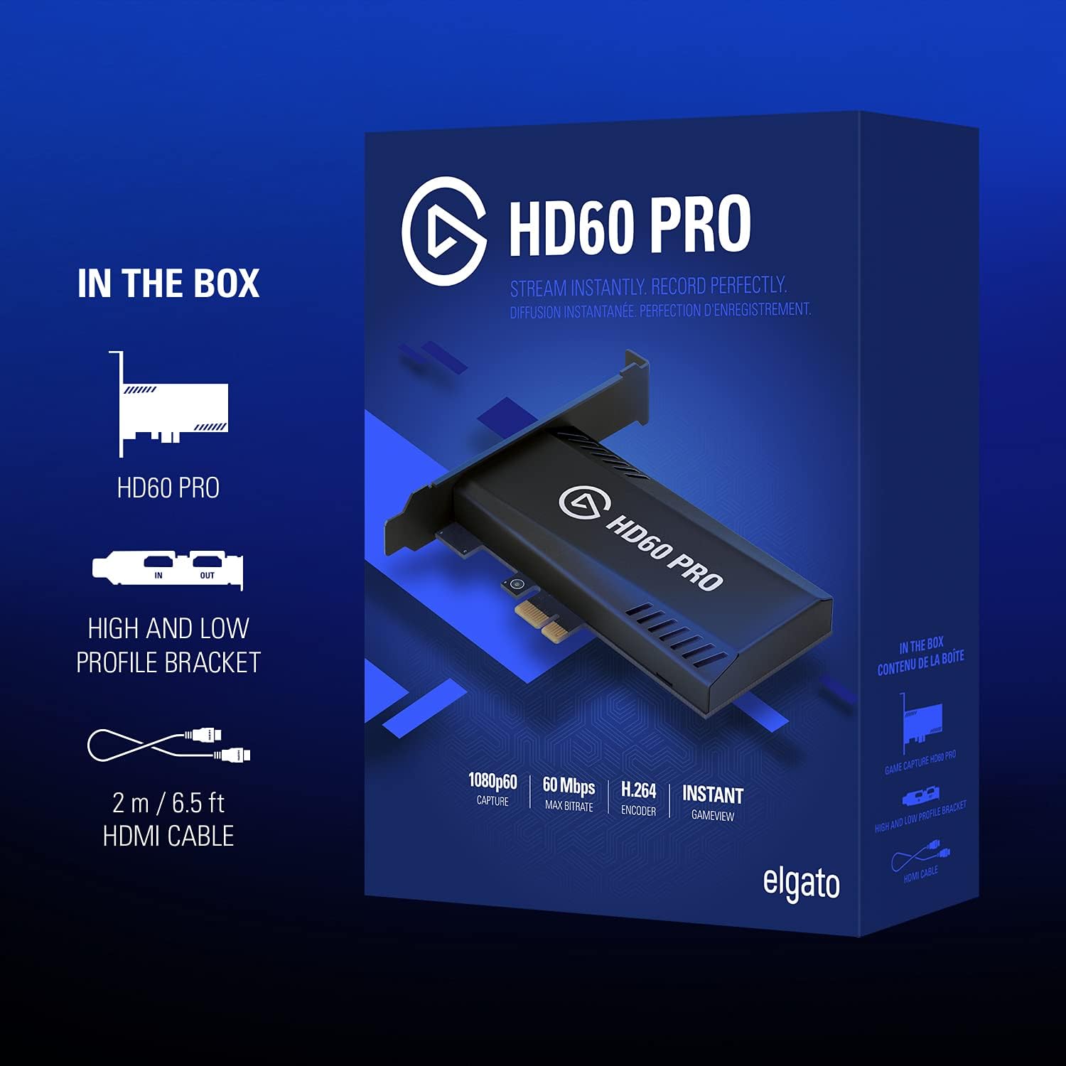 Elgato HD60 Pro1080p60 Capture and Passthrough, PCIe Capture Card, Low-Latency Technology, PS5, PS4, Xbox Series X/S, Xbox One, black