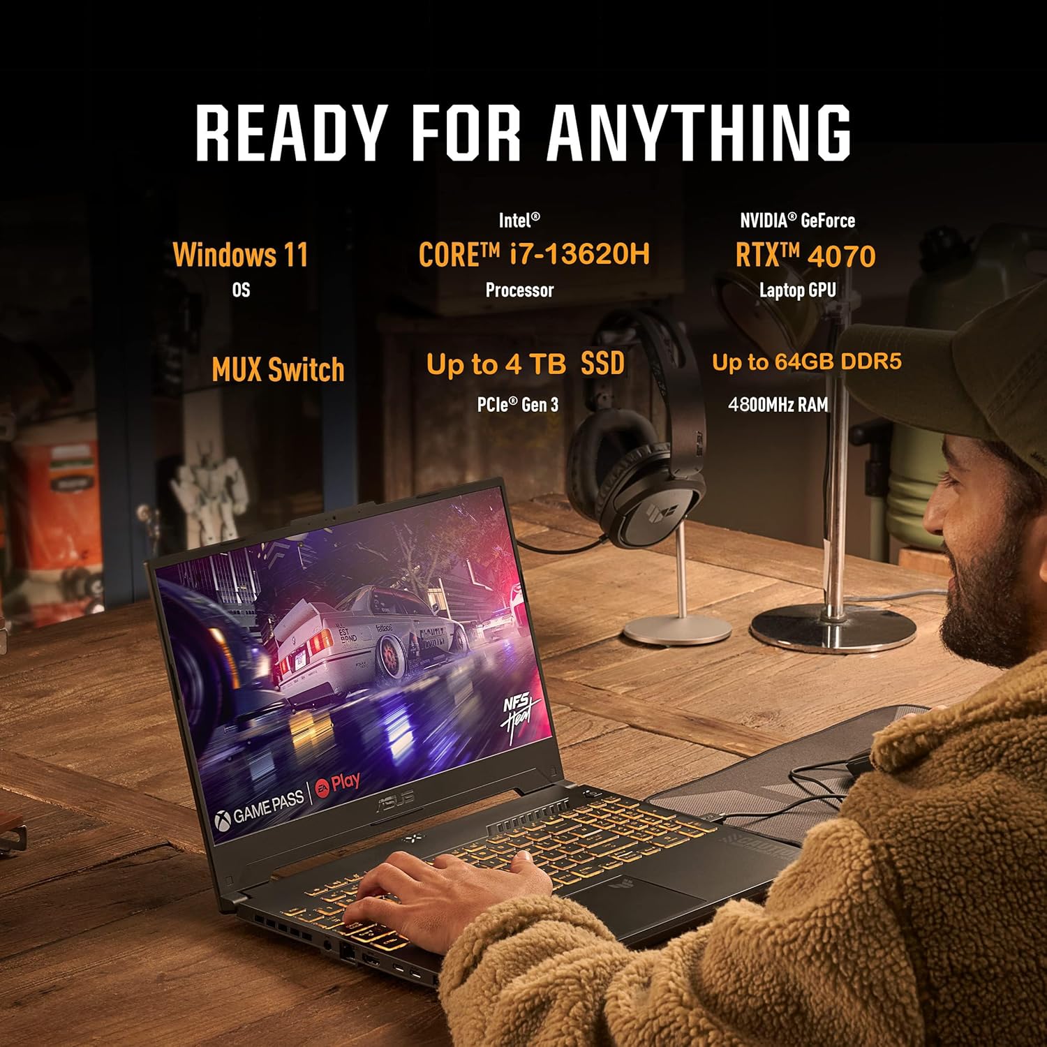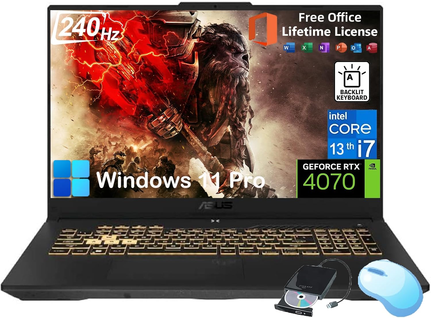 ASUS TUF F17 Gaming Laptop - 17.3" 2.5K WQHD 240 Hz Display, GeForce RTX 4070 Laptop, Intel i7-13620H, w/Office Lifetime, 64GB DDR5,4TB SSD, Windows 11 Pro, Backlit KB, Wi-Fi 6, External DVD Drive