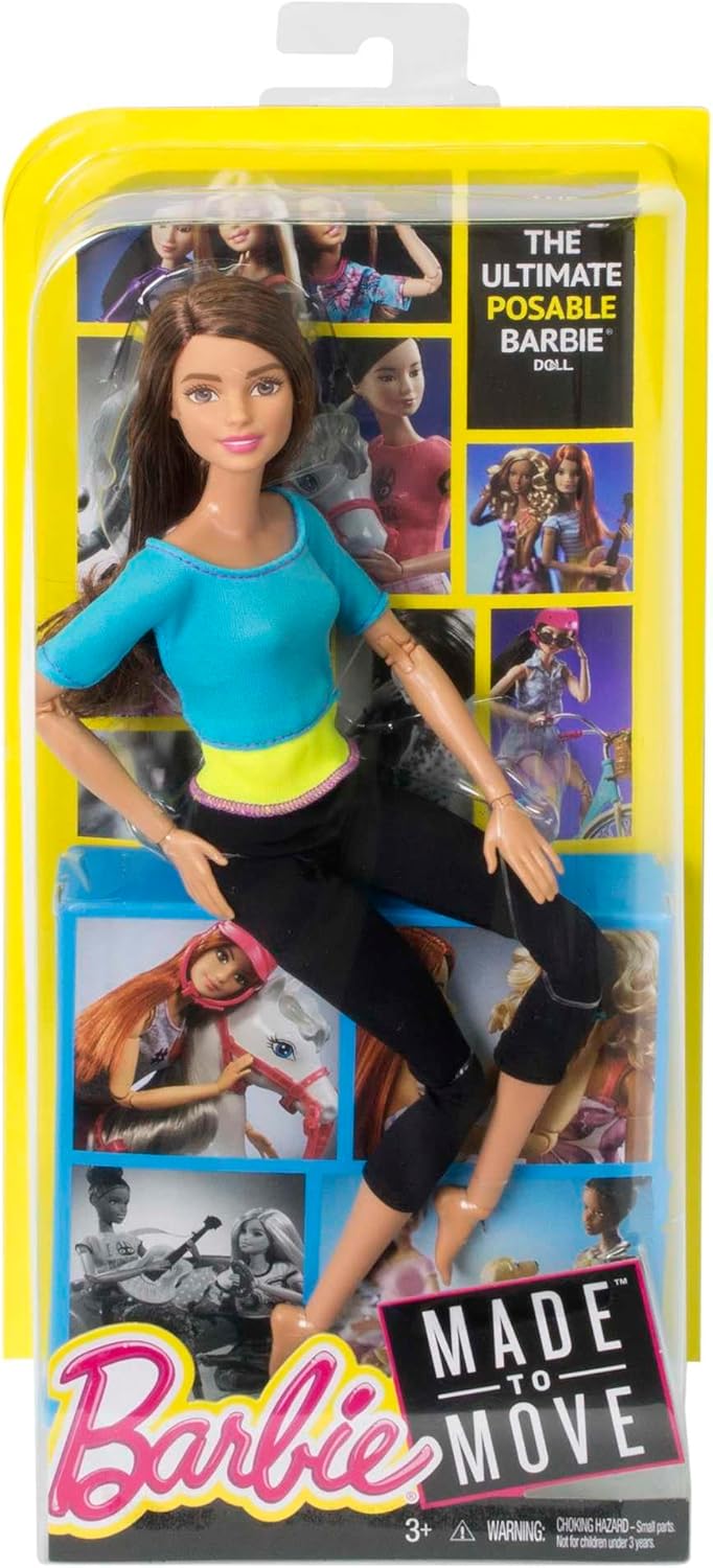 Barbie Made to Move Fashion Doll con Cabello Castaño Usando Top de Colores Azul y Leggings de Yoga, Flexible con 22 "Articulaciones" Posables
