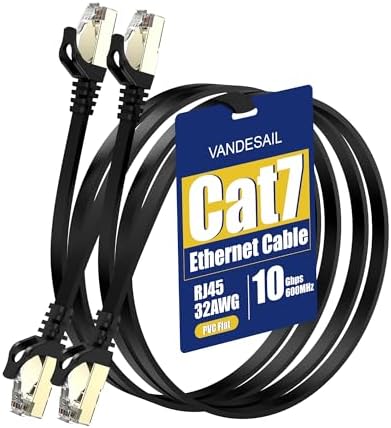 Cat 7 Ethernet Cable, 10Gb Internet Network LAN Patch Cords 10ft, High Speed Flat STP LAN Cord Gold Plated for PC, Router, Switch, Modem - 3M 2Pack