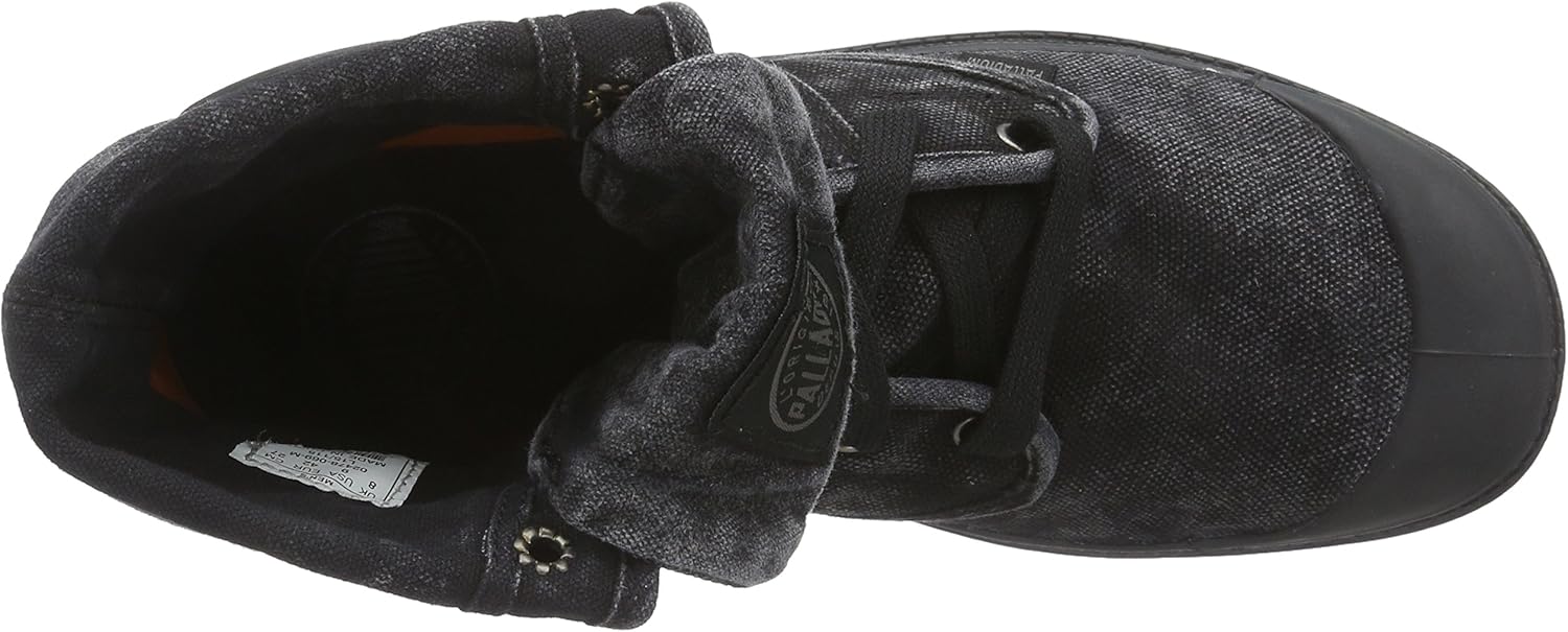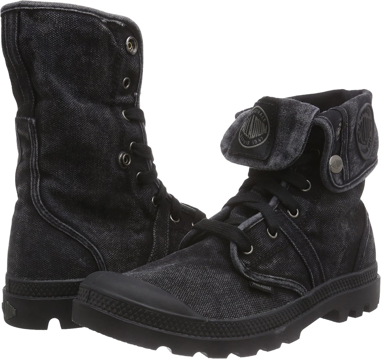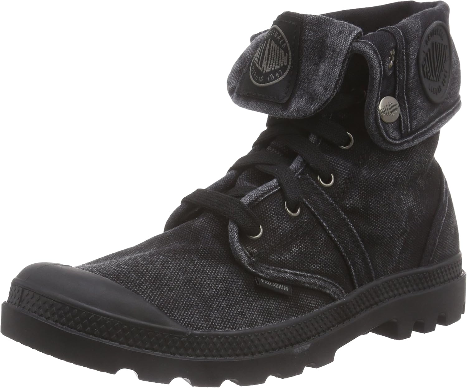 PALLADIUM BOOTS MEN'S PALLABROUSE BAGGY CANVAS BOOTS Palladium Boots’ military heritage is reflected in a timeless shoe with a versatile look. With the collar up, the men’s shoes are sleek monochrome hi-tops. Snapped down, they reveal the signature rubber logo patch. The washed canvas shoes come in an array of subdued summer colors. PALLADIUM BRAND For over 70 years, Palladium's boots have been at the service of curious and independent individuals like volcano scientist Haroun Tazieff or music artist Pharrell Williams. Decades of supporting life explorers has taught us that the good life doesn't just happen—we have to chase it, to build it, to create it for ourselves. That's why we continue to making timeless and adaptable gear that gives people the freedom to embrace the unexpected.