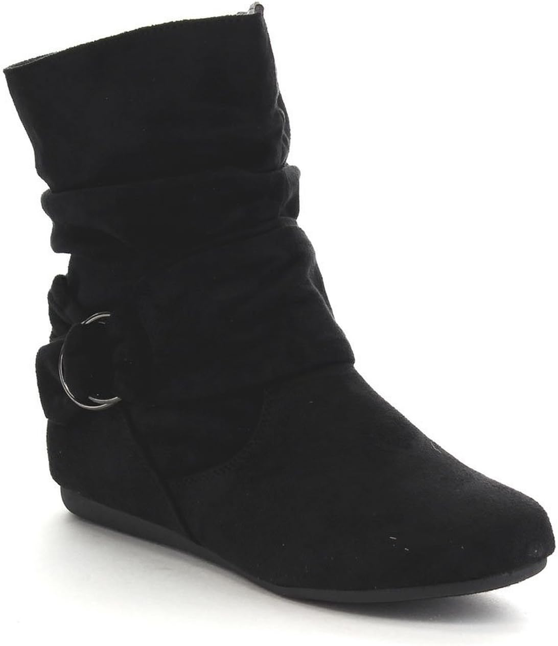 BESTON Forever Selena-58 Women's Fashion Mid Calf Flat Heel Side Zipper Slouch Boots Black 5.5
